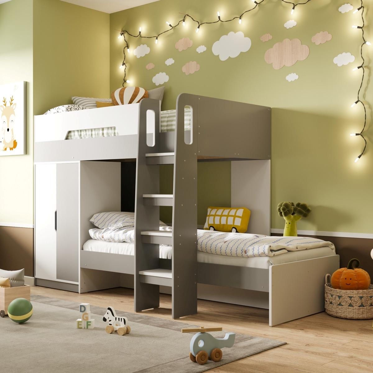 Flair Benito Bunk Bed With Wardrobe White and Grey
