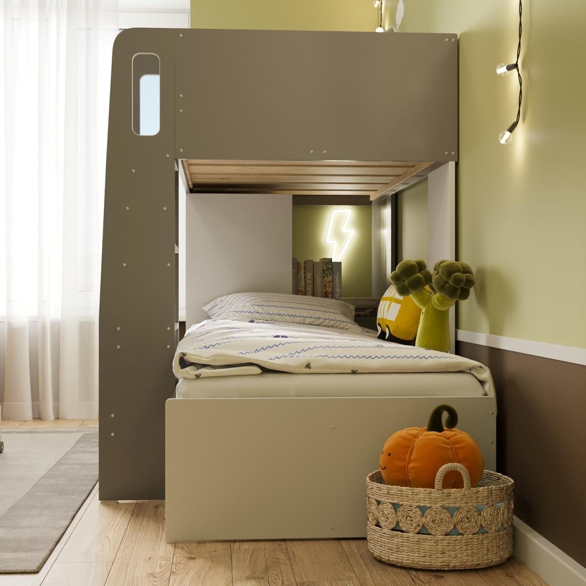 I love the Flair bunk bed because of its clever combination of functionality and style, making it ideal for optimise space in a child's room. The white and grey colour palette provides a neutral, modern look that works well in contemporary interiors or schemes with soft pastels and natural textures. It also offers a practical yet playful space with the integrated wardrobe, helping to keep the room organised while doubling as a cosy sleeping area. For styling, consider pairing it with light wood or pastel accessories for a fresh, inviting feel, or keep the surroundings simple and let the piece be the focal point. This setup is perfect for compact bedrooms where smart storage solutions and a clean aesthetic are priorities.