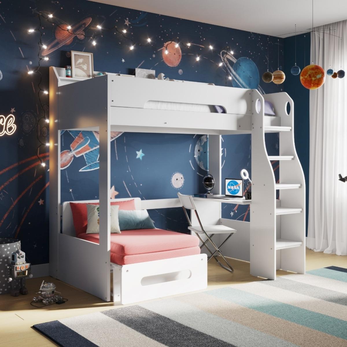 Flair Cosmic High Sleeper White With Futon -