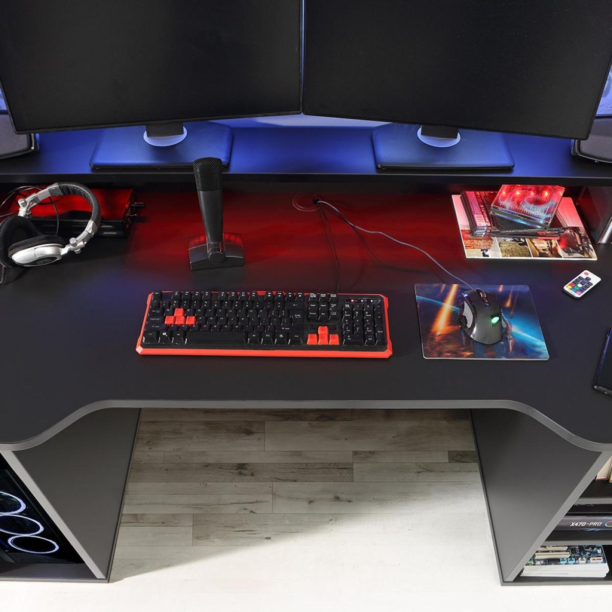 With the Power X Gaming Desk from Flair Furnishings, your kiddie can truly immerse themselves in the latest game. Including storage shelves, there will be ample space to store those spare accessories and games. Complete with a raised shelf for the screens, a cable port to keep those wires neatly tucked away plus its ergonomic design, each element has been added to give you the best setting possible. Plus, with colour changing LED lighting, this desk really does have it all!.