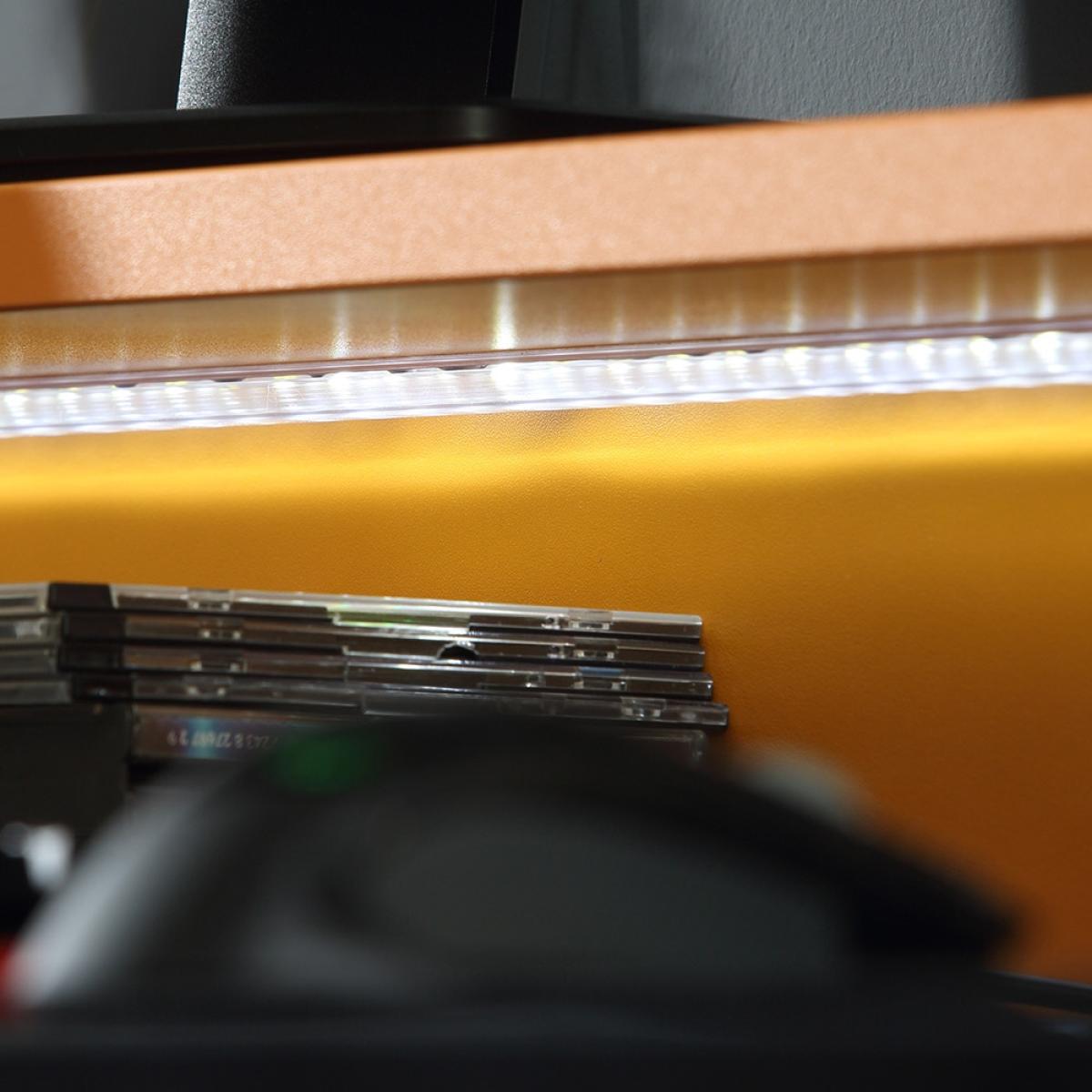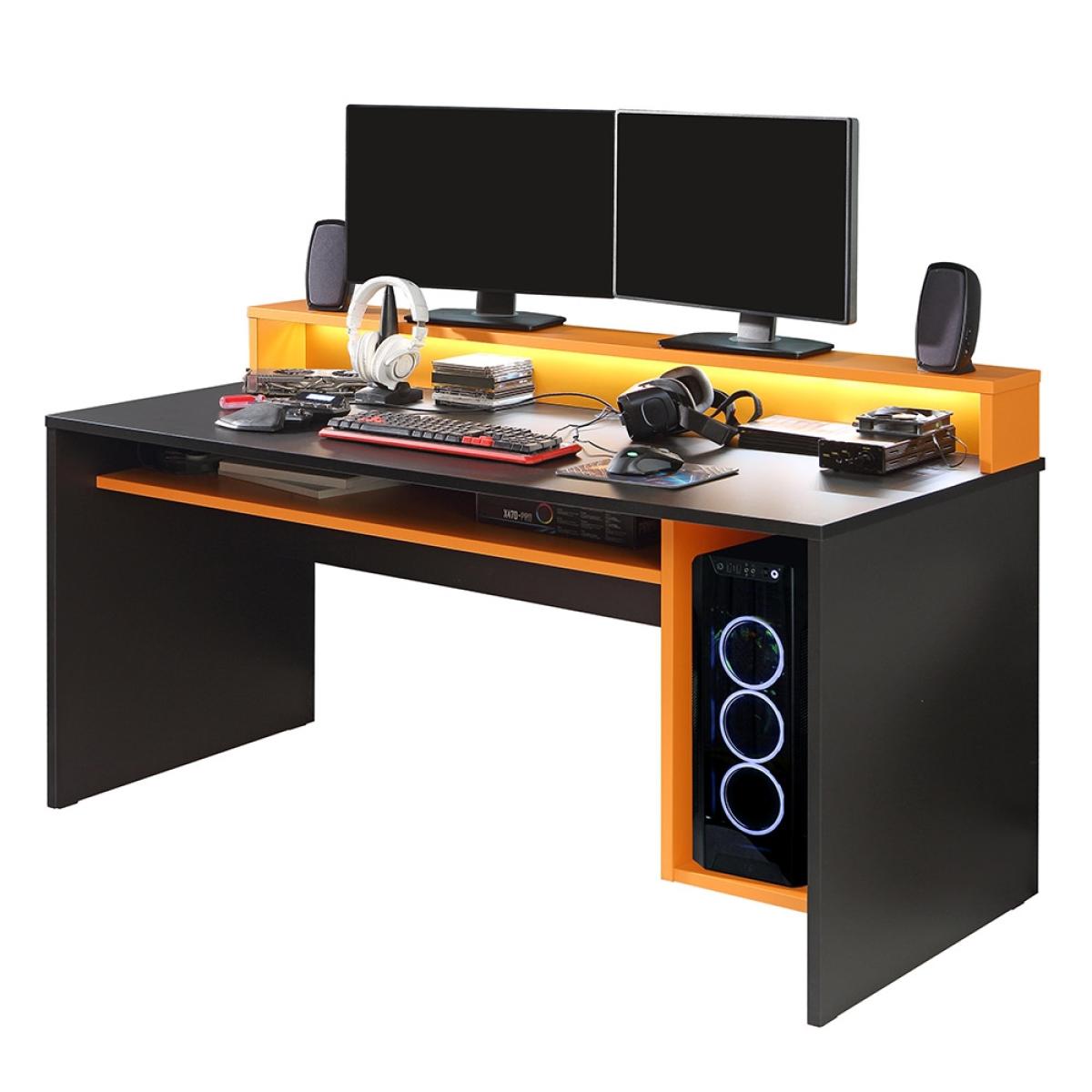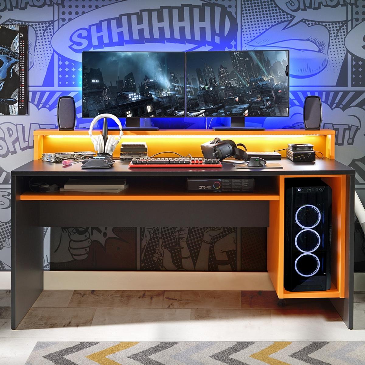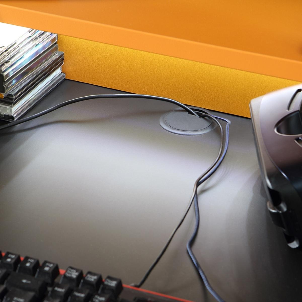 Finished in orange and black, the Power Y Gaming Desk from Flair Furnishings is the perfect way to update your gaming experience! Featuring a generous tabletop with a raised shelf and enough space for two screens, you can fully immerse yourself in that latest release. Complete with a storage shelf, you can keep those spare accessories and controllers close by and the cable tidy means no trailing wires all over the place! Including colour changing LED lighting, desk is sure to give you the best setting possible for some serious gaming!.