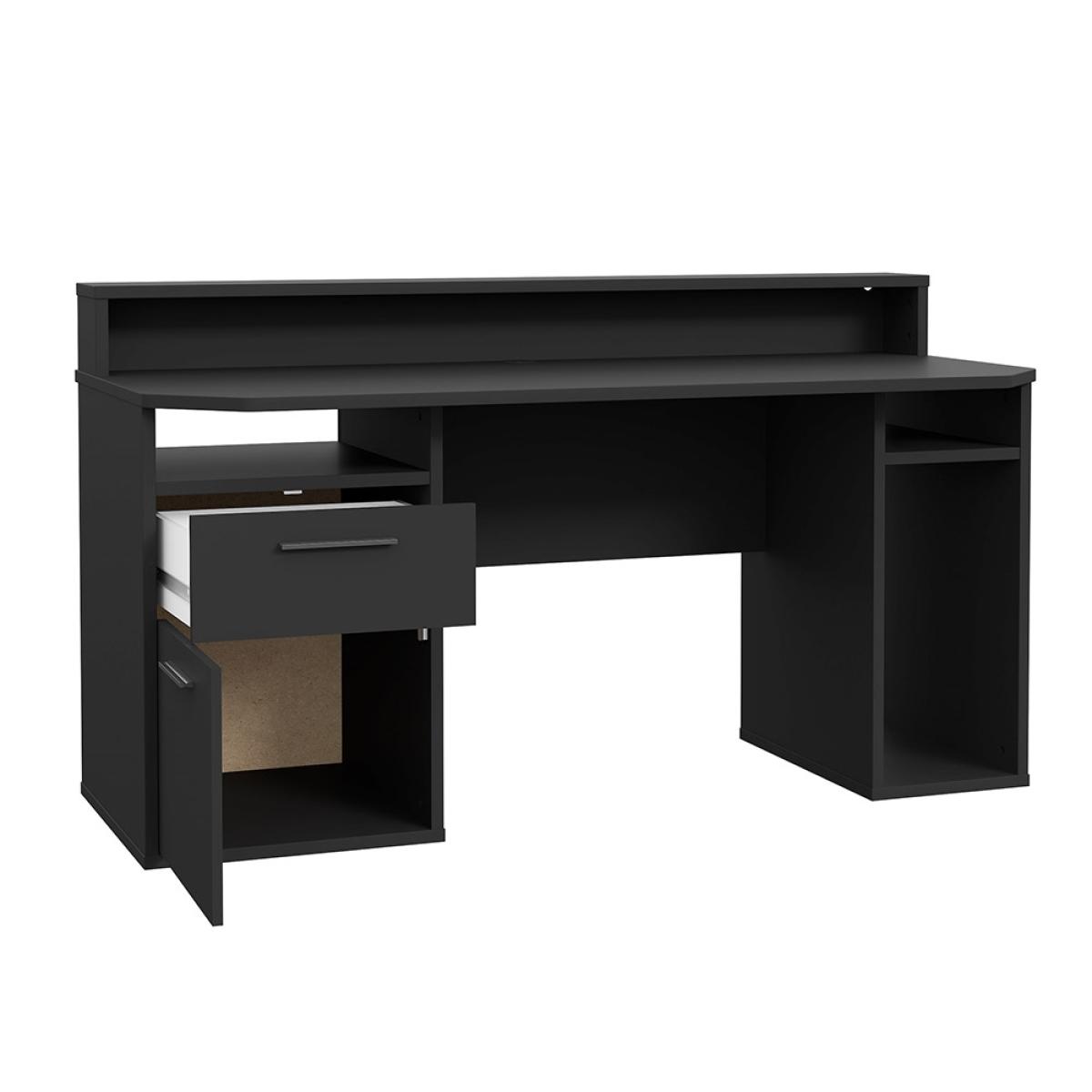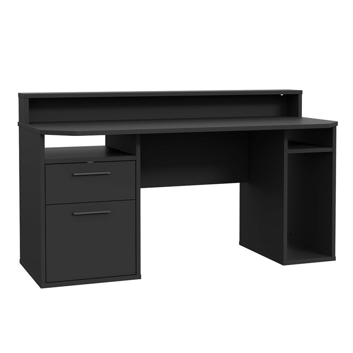 Create the best gaming set up with the Power Z Gaming Desk from Flair Furnishings! The Power Z Gaming Desk may look simple but looks can be deceiving. It has been designed with gamers in mind. Featuring a large desktop, the top monitor shelf can fit up to 2 screens so you can fully immerse yourself in the latest release. Complete with a storage shelf, a drawer and cupboard, there is space a plenty to keep those spare accessories and controllers neatly tucked away and the cable port means no trailing wires all over the place. And with colour changing LED lighting, this Power Z Gaming Desk really does have everything!.