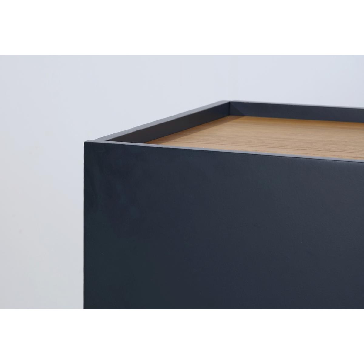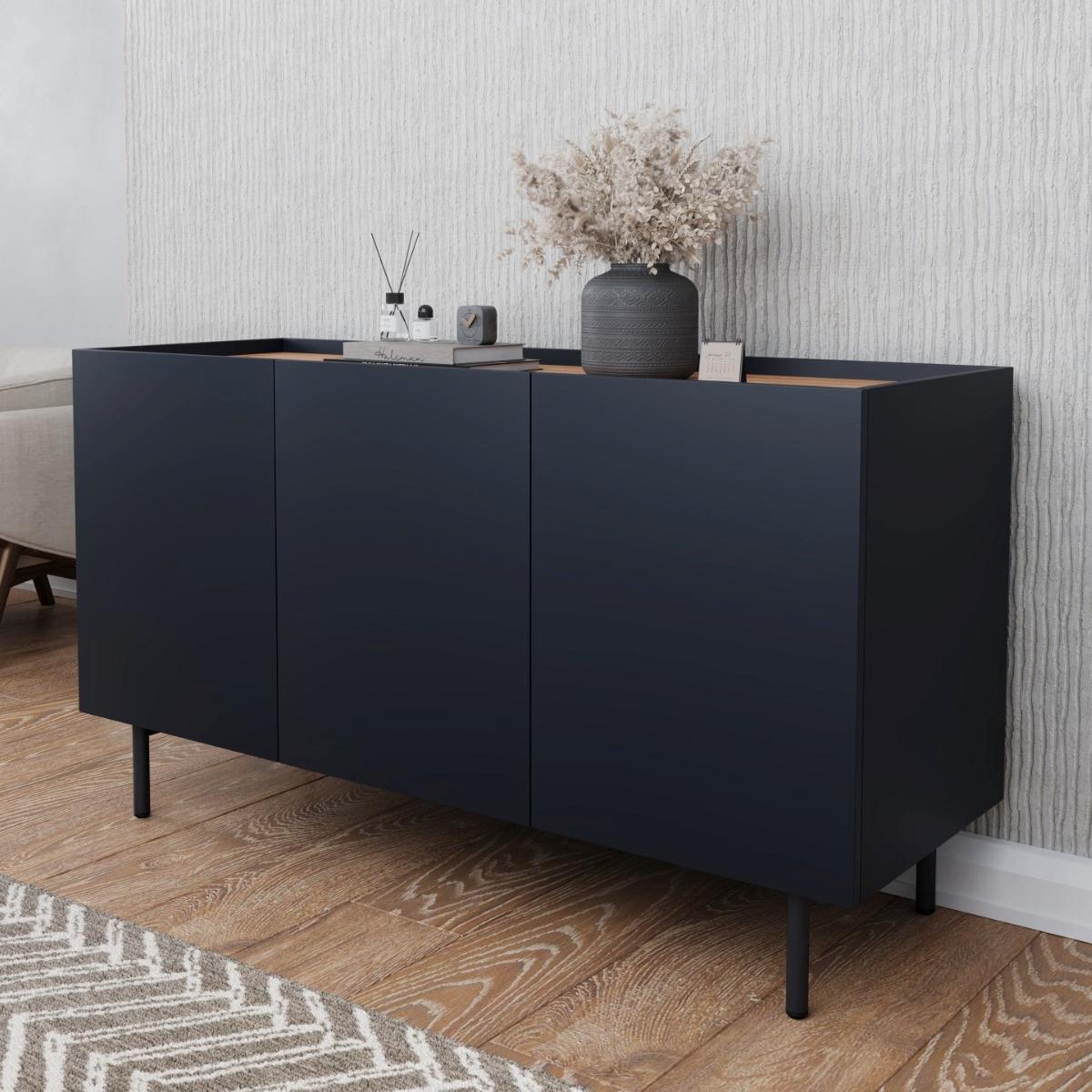 I really like this minimal, modern sideboard because of its clean lines and versatile colourway. The dark grey paired with oak detail makes it adaptable for both contemporary and Scandi-inspired interiors, adding warmth without overwhelming the space. It works particularly well in open-plan living areas or as a media unit, providing ample storage while keeping surfaces clutter-free. Styling tips include adding a few statement objects like a sculptural vase or books on top, while balancing the look with cosy textiles nearby. Its tapered legs and sleek profile mean it can sit comfortably in smaller rooms without dominating the space, making it an excellent choice for creating a tidy, stylish focal point.
