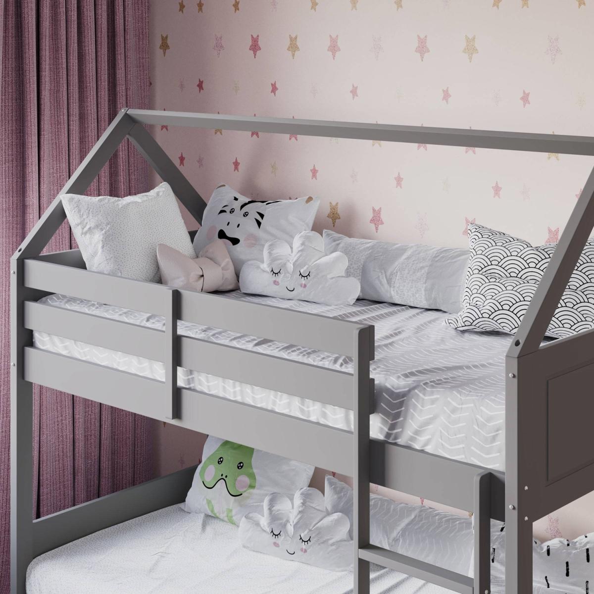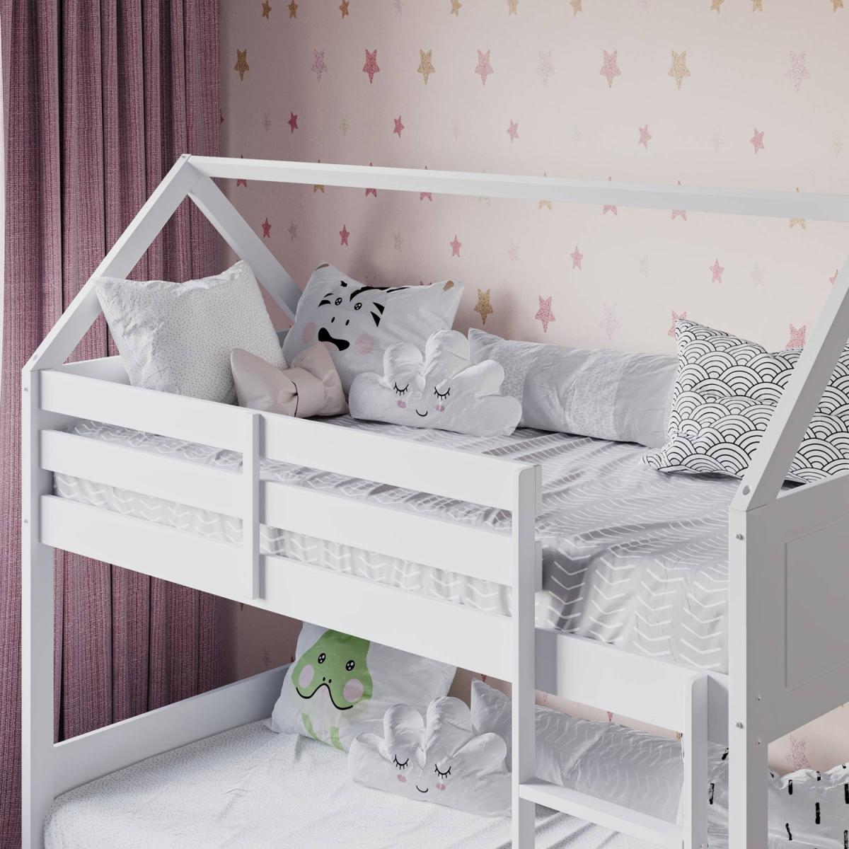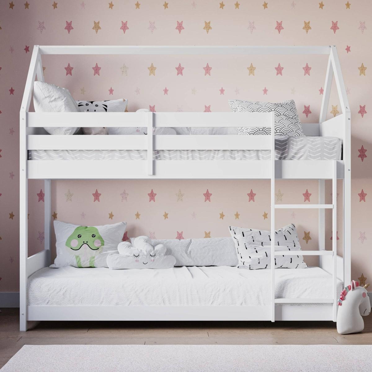 I love this kids’ bunk because of its contemporary yet playful design, perfect for adding a focal point to a child's bedroom. Its low-rise frame makes it accessible and safe for younger children, while the house-shaped top adds a fun, imaginative element to the space. It works well in modern, Scandinavian-inspired interiors where clean lines and neutral tones are key, but it can also be styled in more colourful schemes with playful accessories. Practical tips include using soft, coordinating textiles and creating layered bedding options to make it inviting. Additionally, incorporating clever storage solutions underneath or nearby can keep the bedroom tidy, making this bunk both stylish and functional for growing spaces.