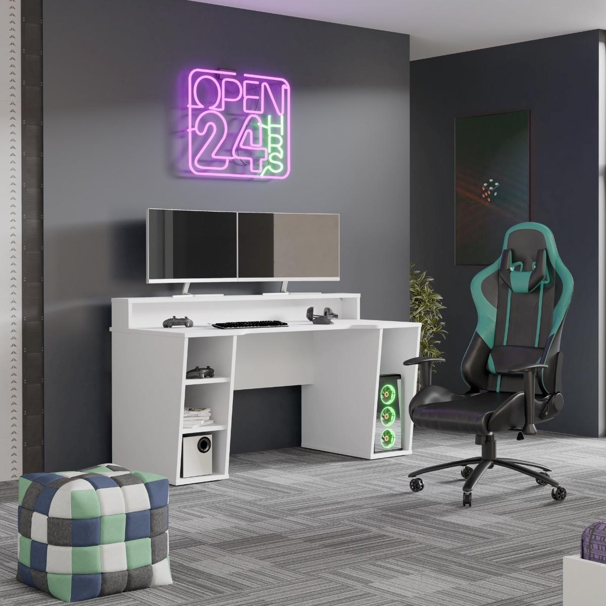 I really like this gaming desk for its sleek, minimalist design and versatile colourway. The white finish helps it blend seamlessly into modern and contemporary interiors, especially if you’re creating a clean, uncluttered workspace. It works well in a variety of settings, from home offices to gaming rooms, and even in Scandinavian-inspired interiors where simplicity is key. Practical styling tips include keeping accessories minimal-think sleek monitor setups and a few organised storage items on the shelves to maintain a tidy look. Pairing it with a modern desk chair and adding subtle pops of colour with accessories or plants can really elevate the overall look while maintaining functionality.