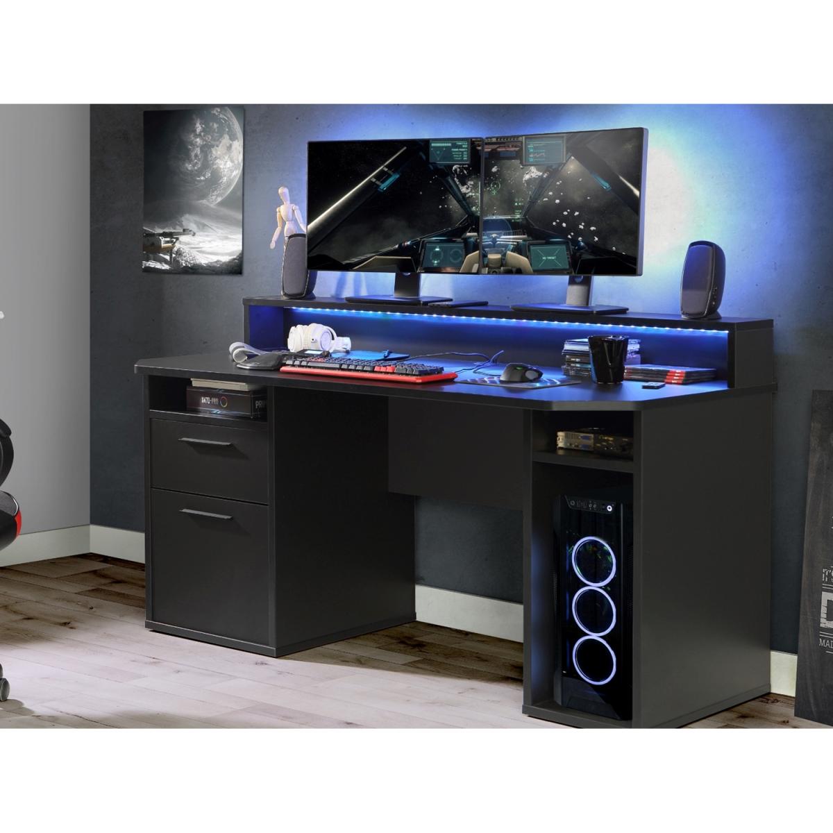 Flair Power Z Computer Gaming Desk With Colour Changing LED Lights Black