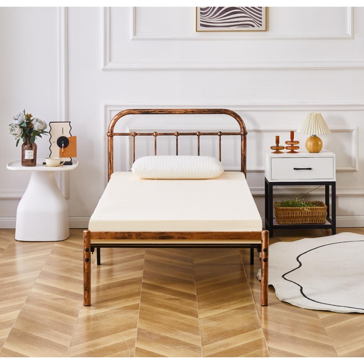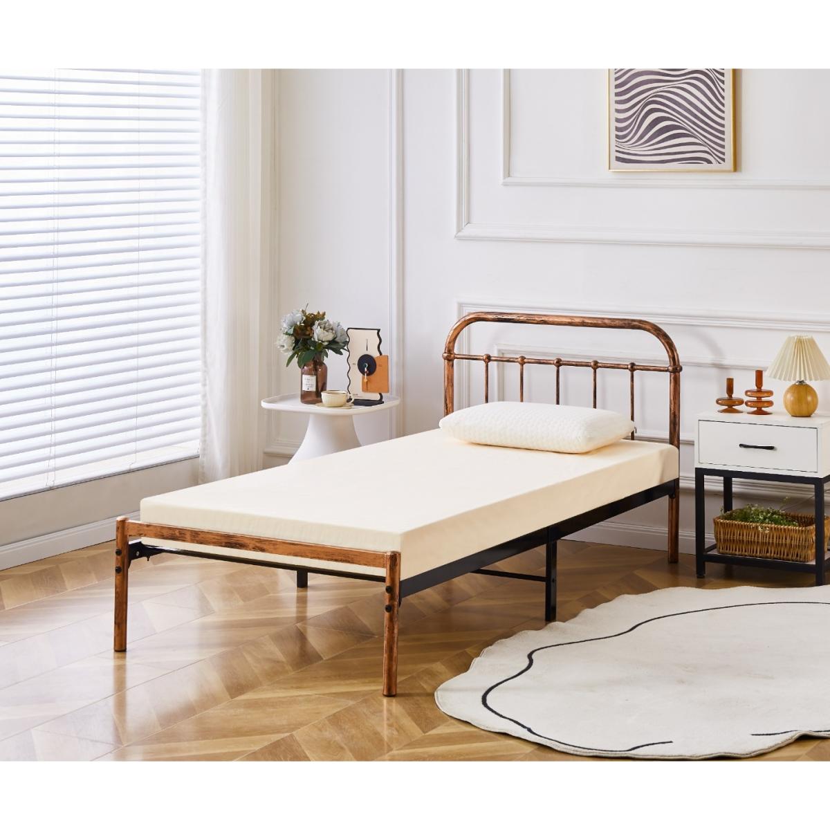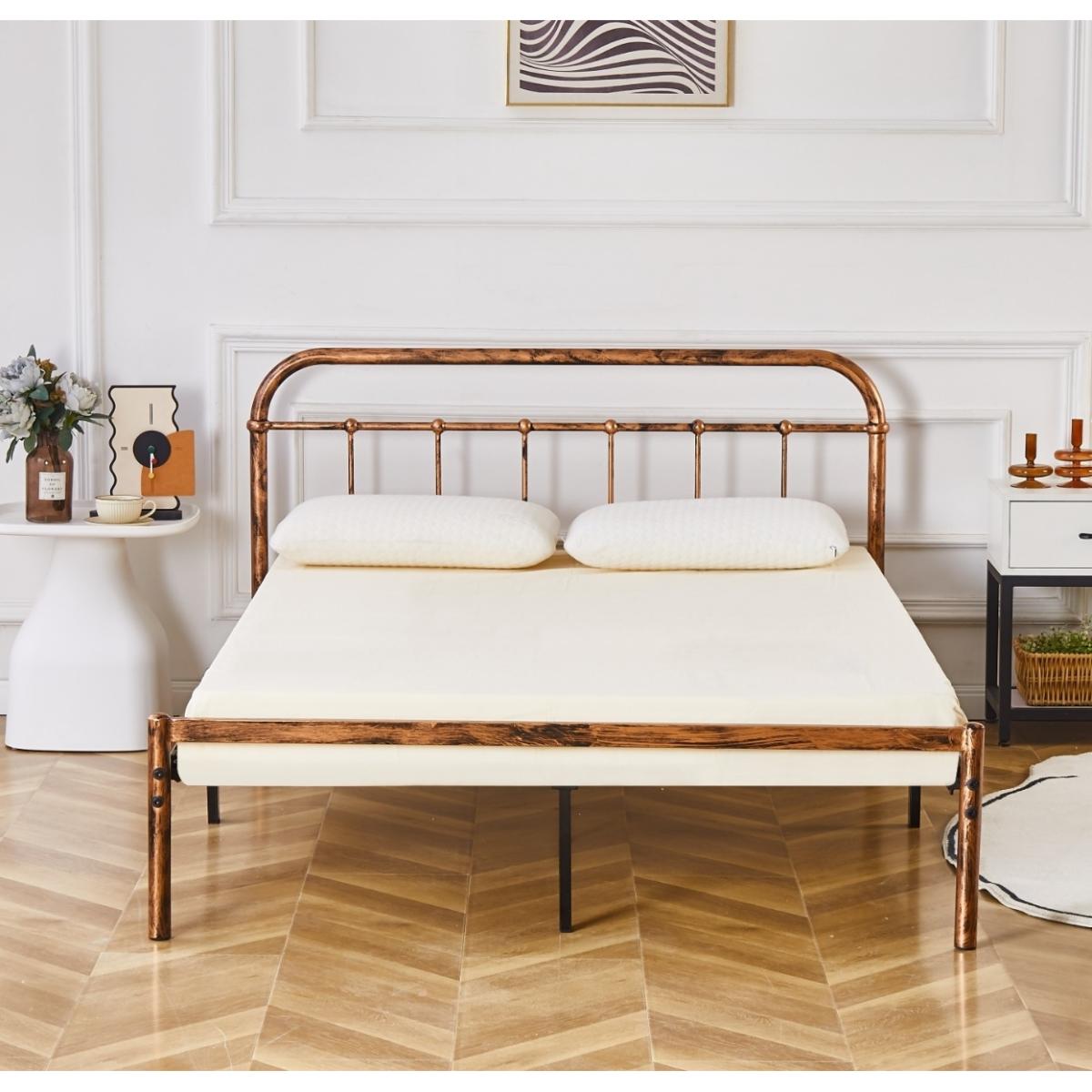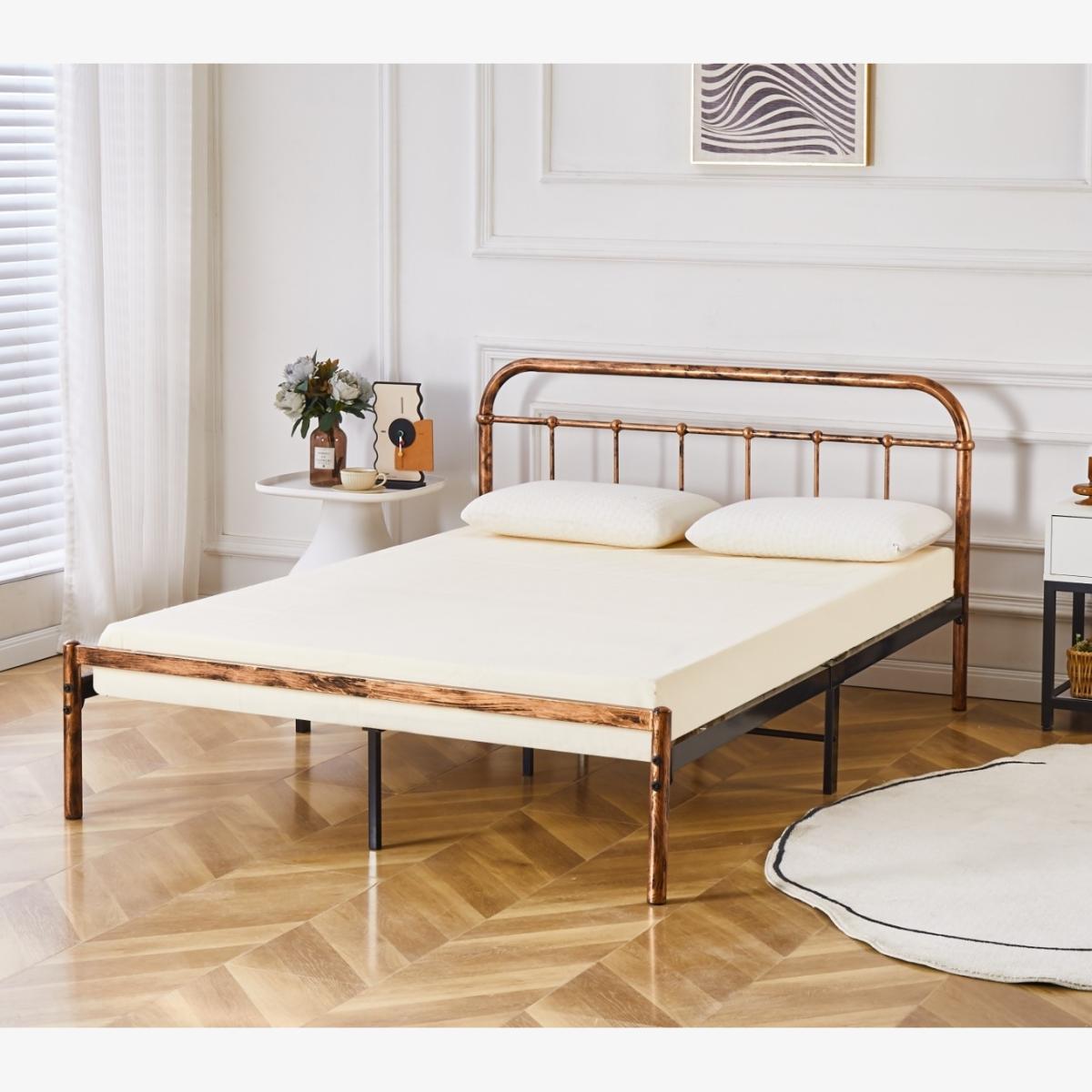 I love this bed frame for its vintage charm and warm antique brass finish, which instantly adds character to any bedroom. It works particularly well in interiors that lean towards industrial, eclectic, or classic styles, where metal accents or heritage elements are key. Practical styling tips include pairing it with crisp, neutral bedding for a sleek look, or adding textured throws and cushions to create a cosy vibe. To optimise its aesthetic, consider complementing it with warm-toned woods or paired with soft, flowing linens for a relaxed yet stylish feel. Its sturdy build and timeless design make it both a functional and eye-catching centrepiece.