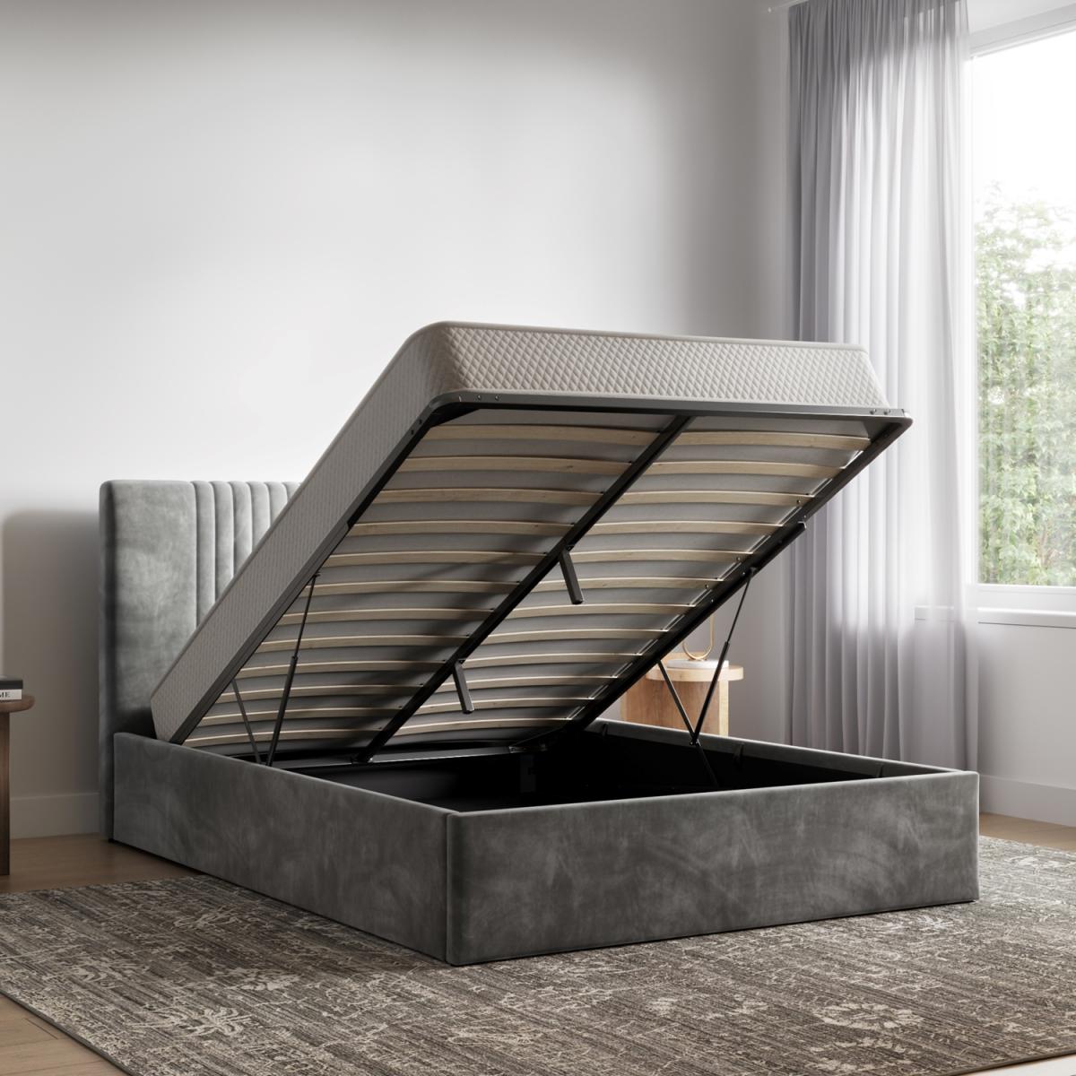 Flair Silver Velvet Sonar Ottoman Bed - King