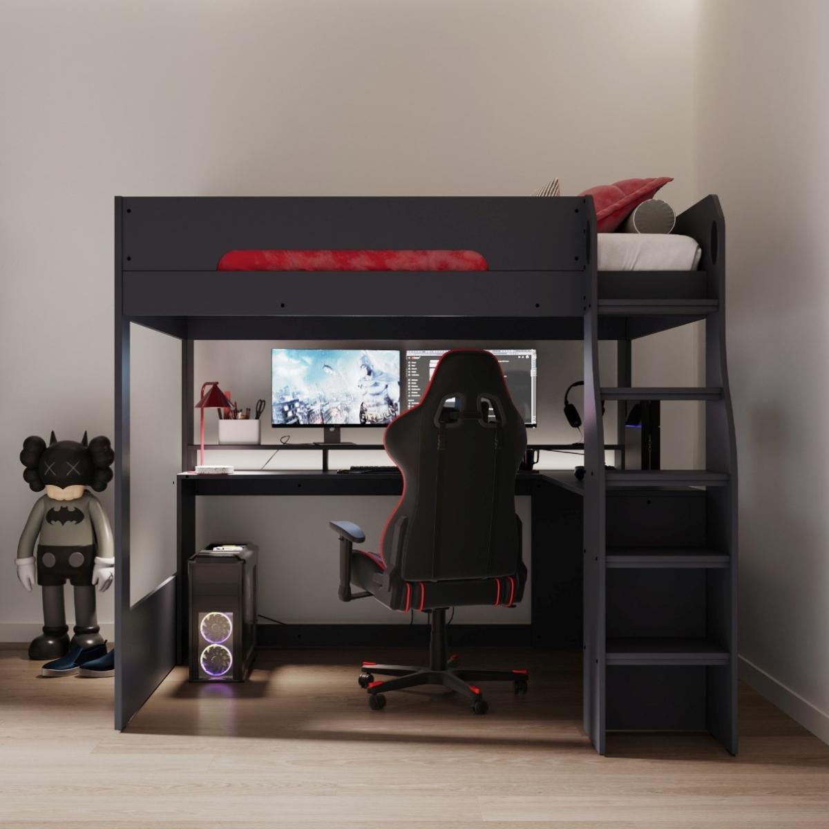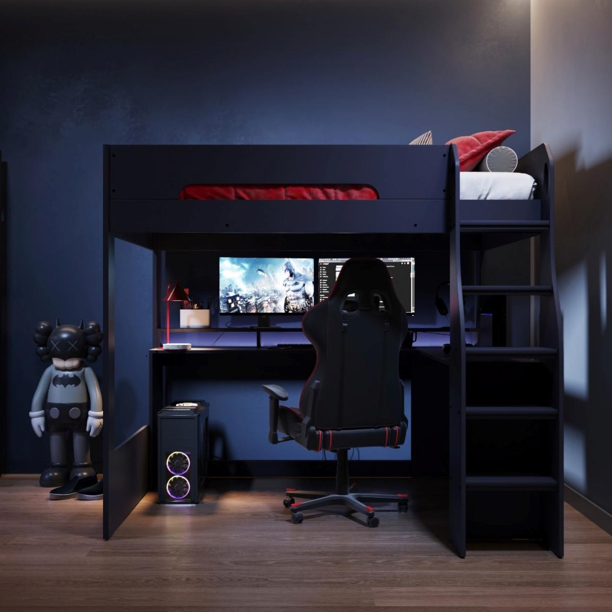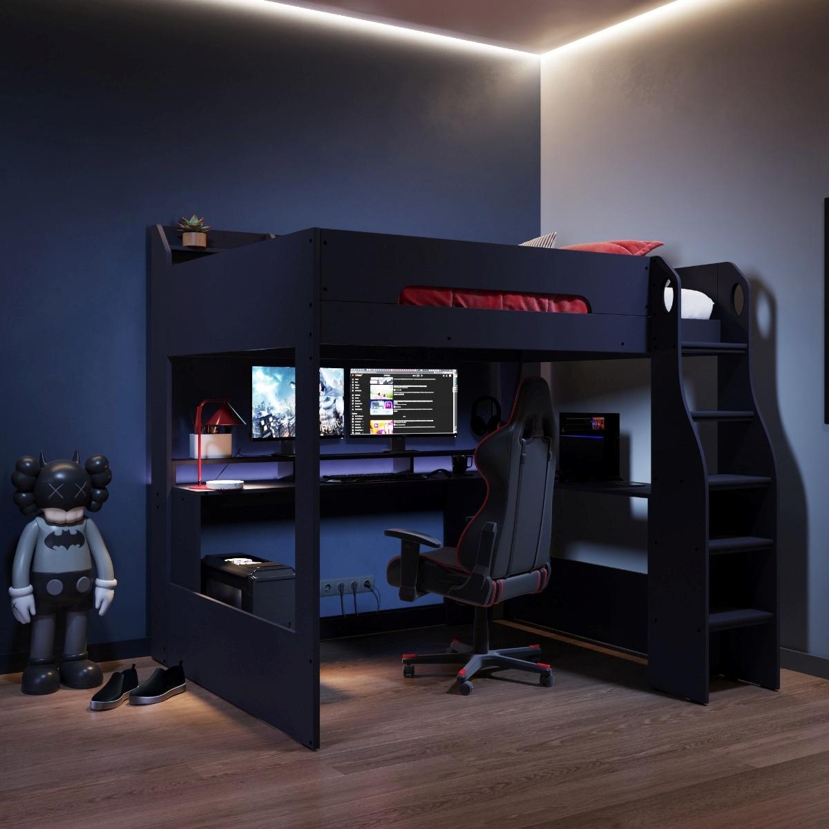 The Flair Skyhigh Gaming High Sleeper in sleek black is the ultimate space for students by day and gamers by night. It combines functionality with a contemporary design, making it a stylish addition to any room.