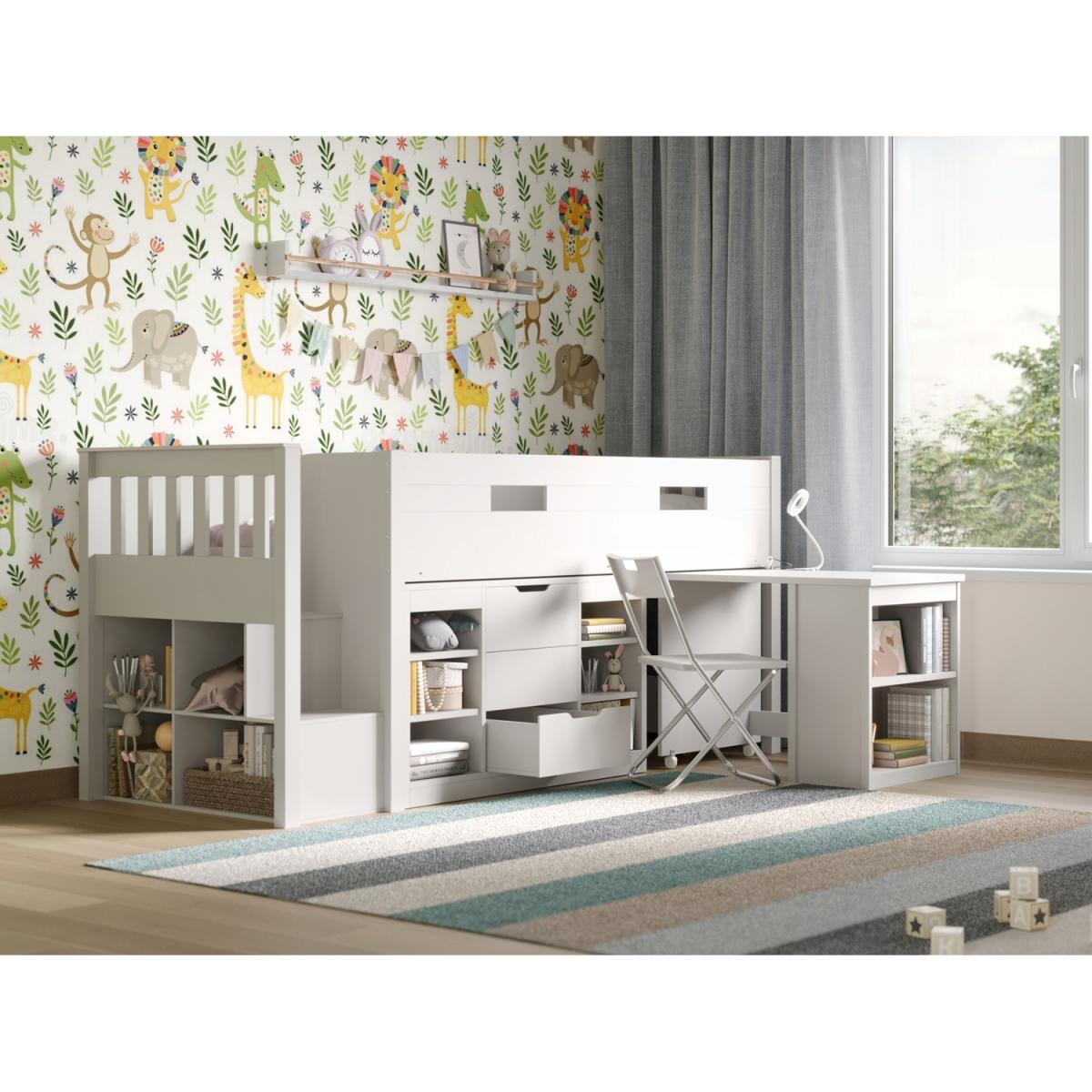 Flair White Charlie Mid Sleeper Set With Storage And Desk -