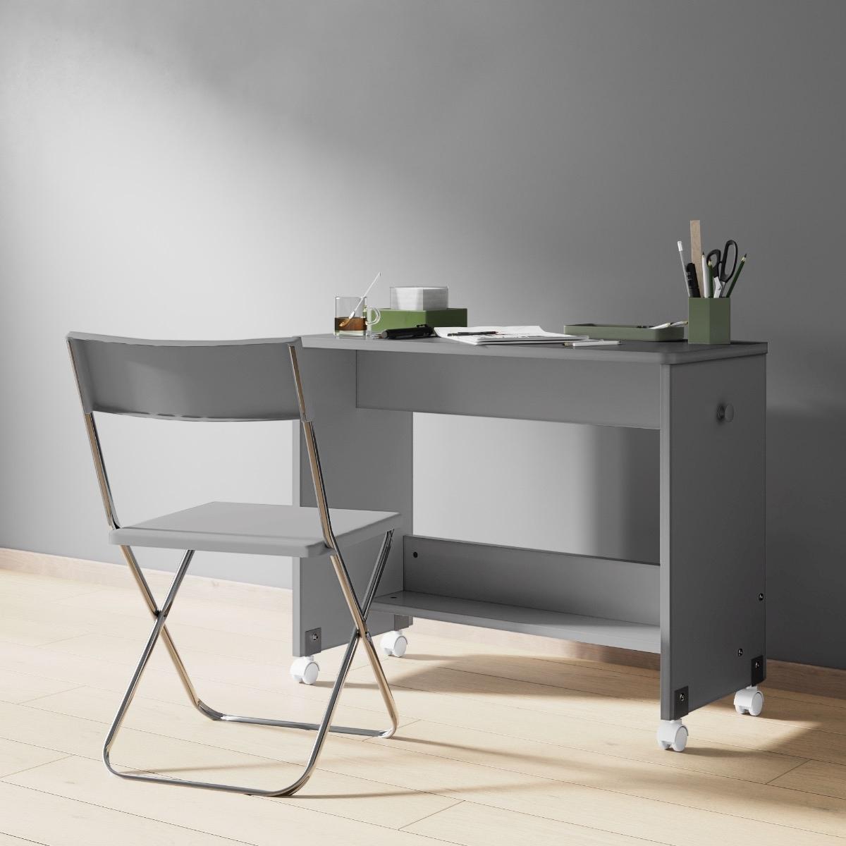 A perfect accessory for any child through to student age, the Wizard desk provides ideal work/play space within a bedroom environment. The grey desk is on wheels, meaning it can be moved around to the user's preference, and the stylish grey finish means that this piece of furniture coordinates perfectly with other modern and contemporary designs, particularly the other products in the Flair Furnishings Wizard range. The desk comes with a small shelf for other storage needs.