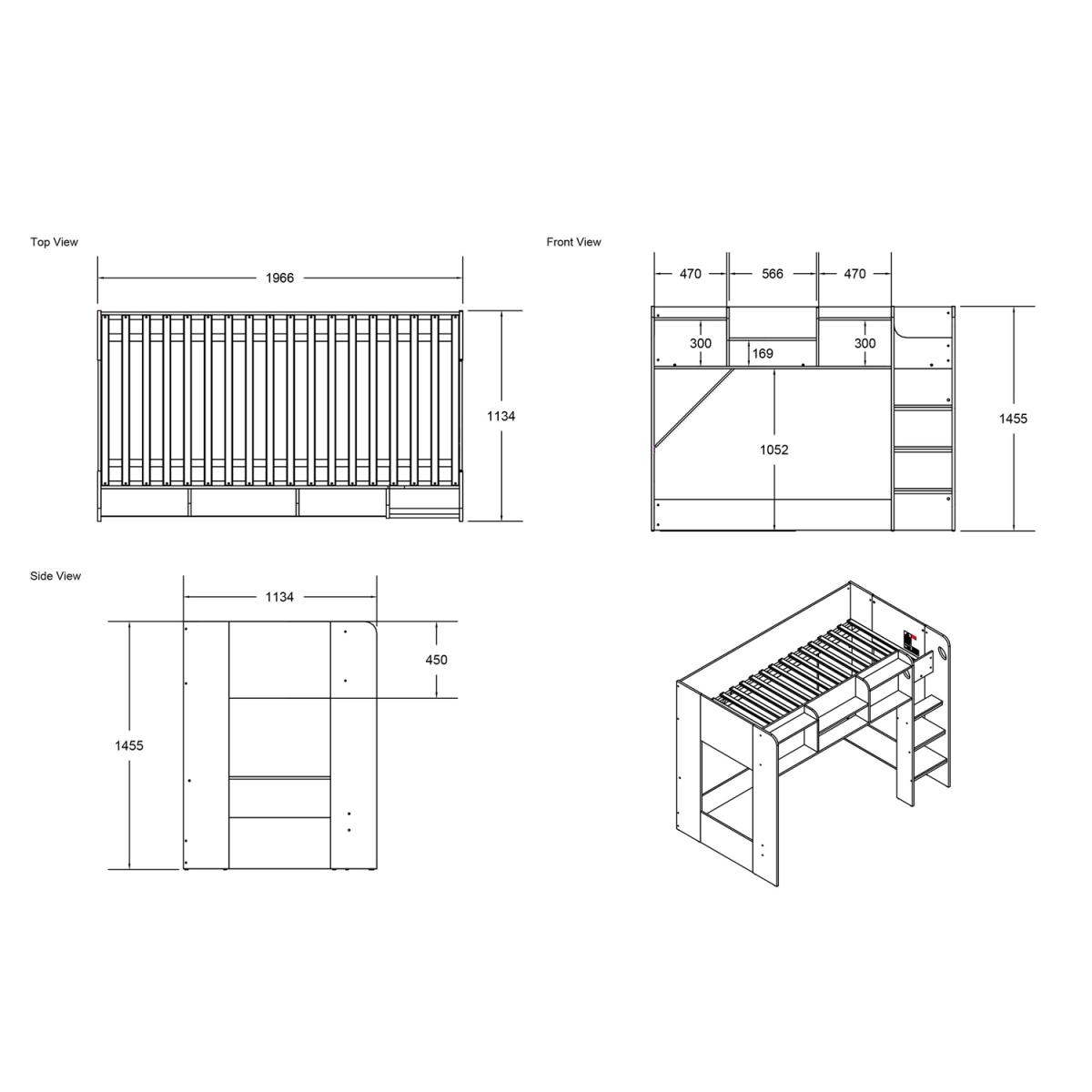 Flair Wizard Junior Mid High Sleeper Storage Station Grey -