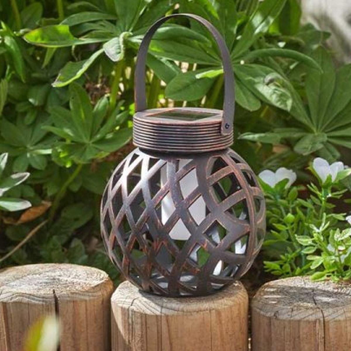This beautiful bronze effect cut out lantern, is perfect for hanging around your garden or using as a table top decoration. Realistic flaming effect- just like a real flame. Give your outdoor table a splash of light with this Solar Lantern. This decorative little lantern will make the perfect decoration for any outdoor setting. Flame Effect Lantern - Bronze