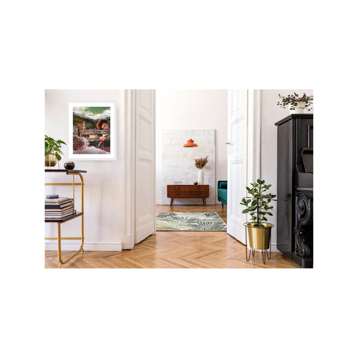 This flamingo hotel print is a vibrant and playful piece that works brilliantly in contemporary or eclectic interiors. I love how it introduces colour and a sense of whimsy without overwhelming the space. It pairs well with neutral backgrounds, such as grey or beige walls, allowing the artwork to be a focal point. Practical styling tips include balancing the bold imagery with simple, understated furniture and accessories - think minimalistic frames or plain cushions to keep the look cohesive. It’s also quite versatile; it can add a punch of personality in a living room or act as a conversation starter in a hallway or bedroom. Just ensure it’s hung at eye level for maximum impact.