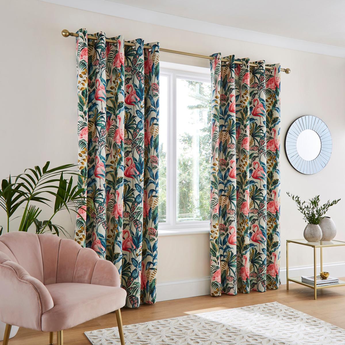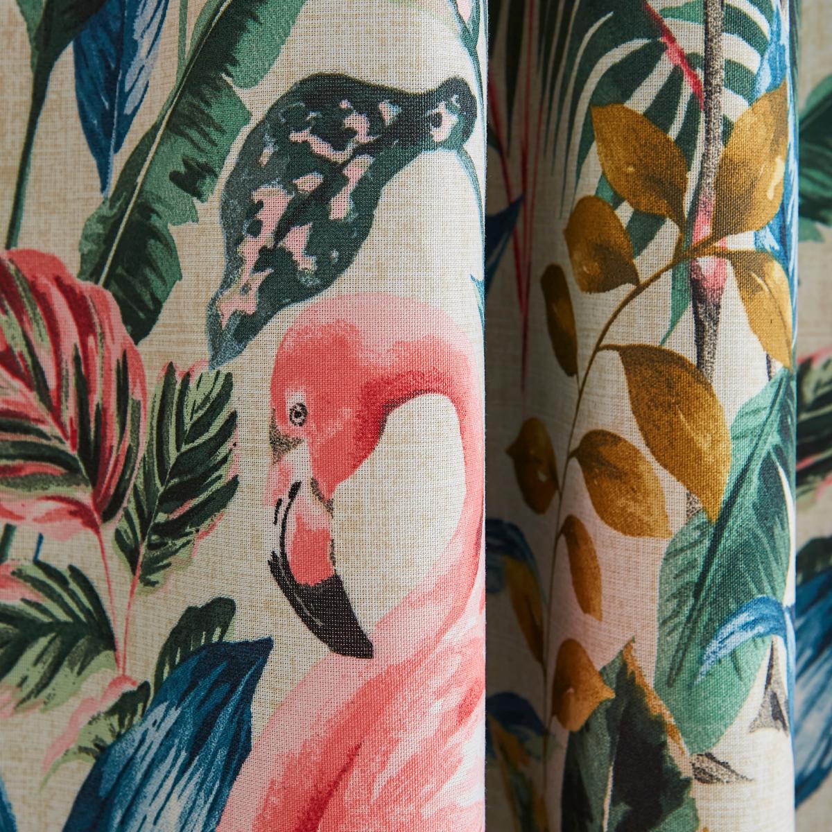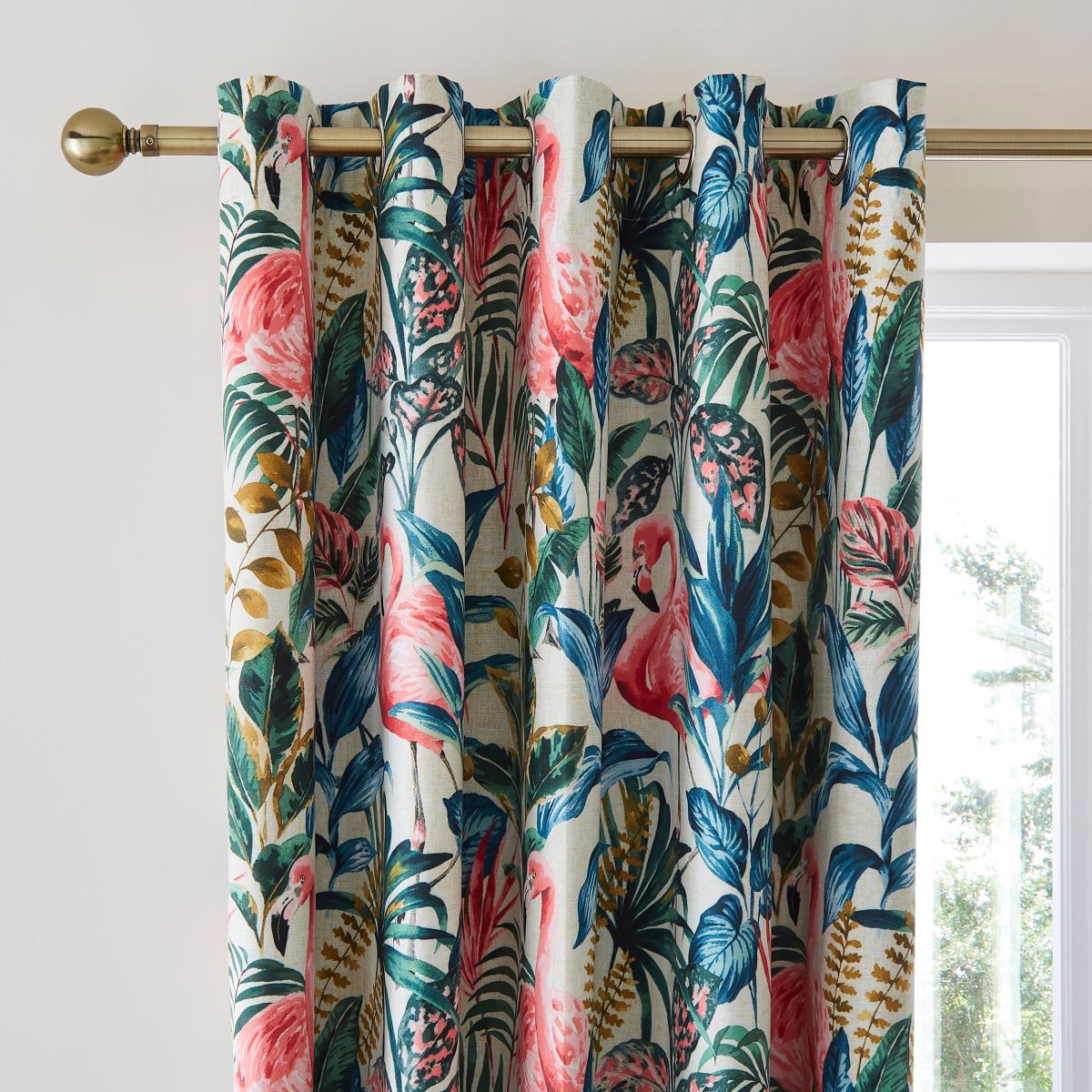 Flamingo Natural Blackout Eyelet Curtains Pink/Green/Yellow