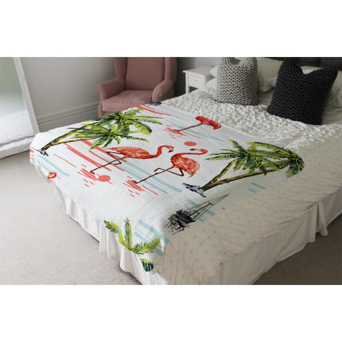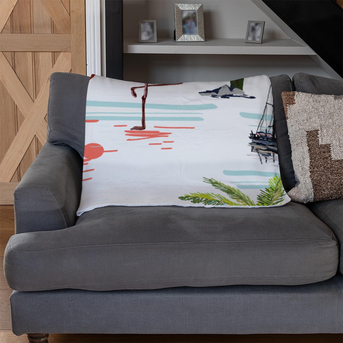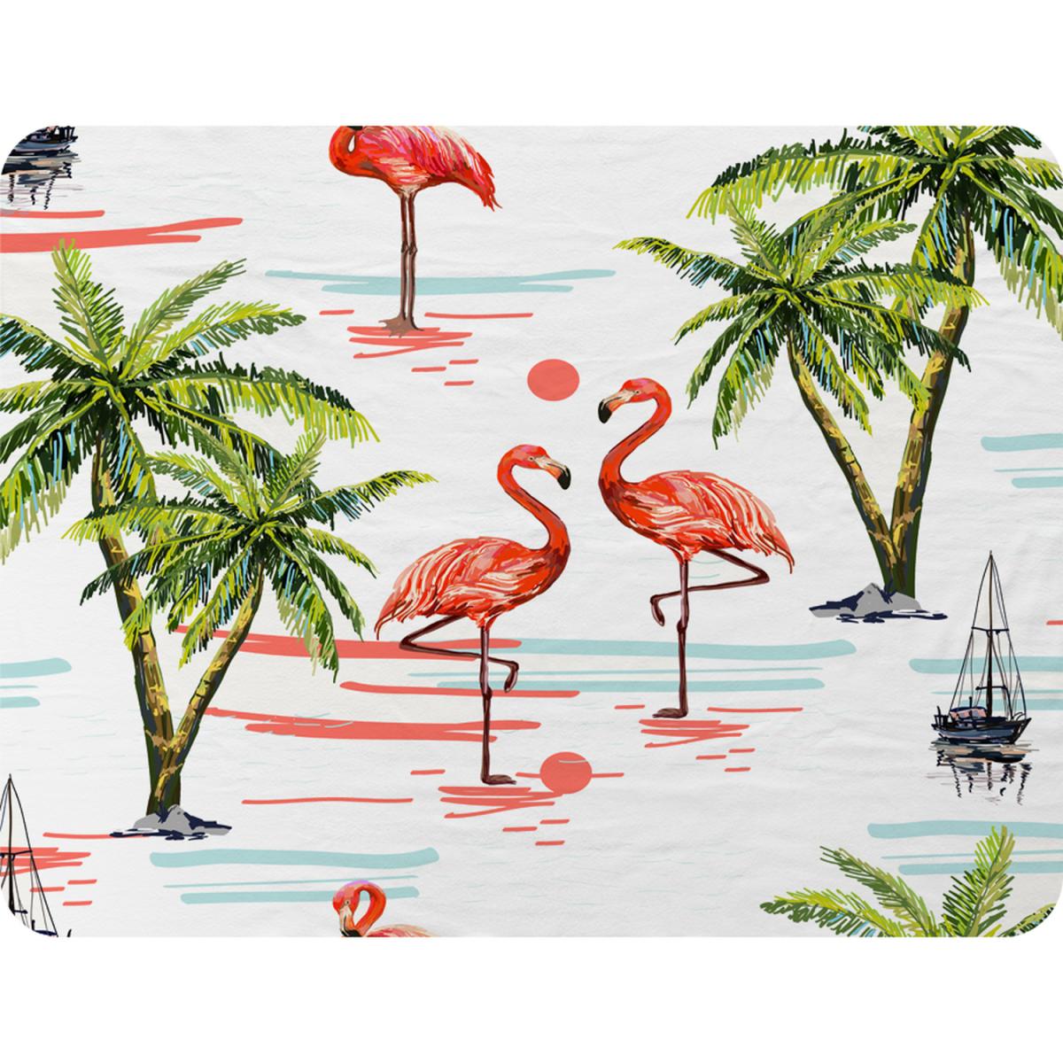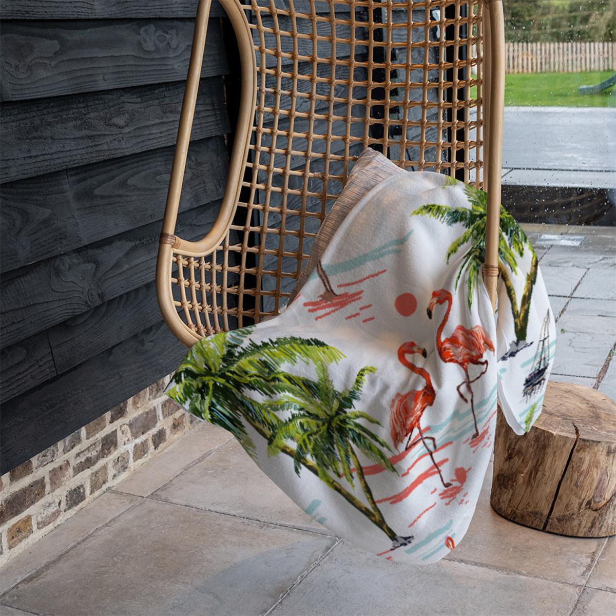 I love this flamingo and palm print throw for adding a fun, tropical touch to both casual and contemporary interiors. Its bright pink hue makes it a lively accent piece, perfect for relaxing spaces like a living room or even a sunroom. It works well layered on a neutral sofa or draped over a garden chair for an inviting, relaxed vibe. Practical styling tips include pairing it with other soft textures like linen or cotton cushions to emphasize a natural feel, or using it to add colour and interest in a pared-back setting. Its playful design makes it versatile enough to elevate cottage-core schemes or add a pop of personality to more modern, minimalist interiors.