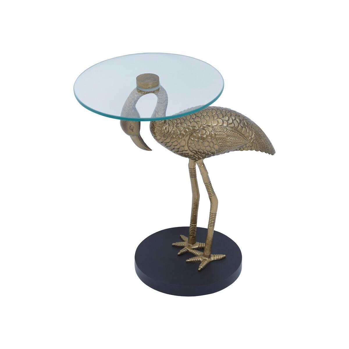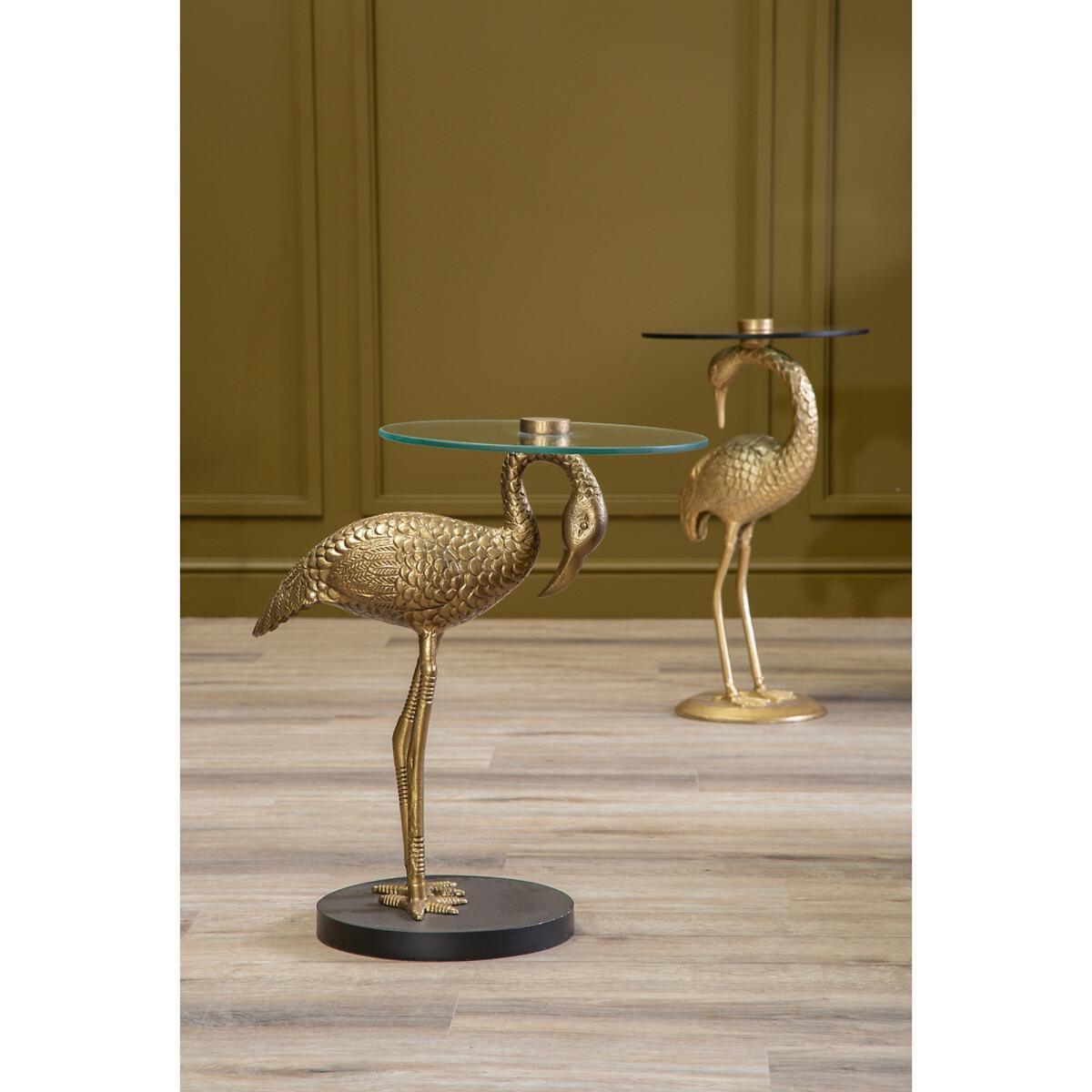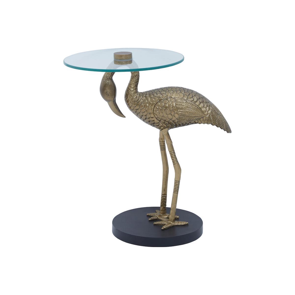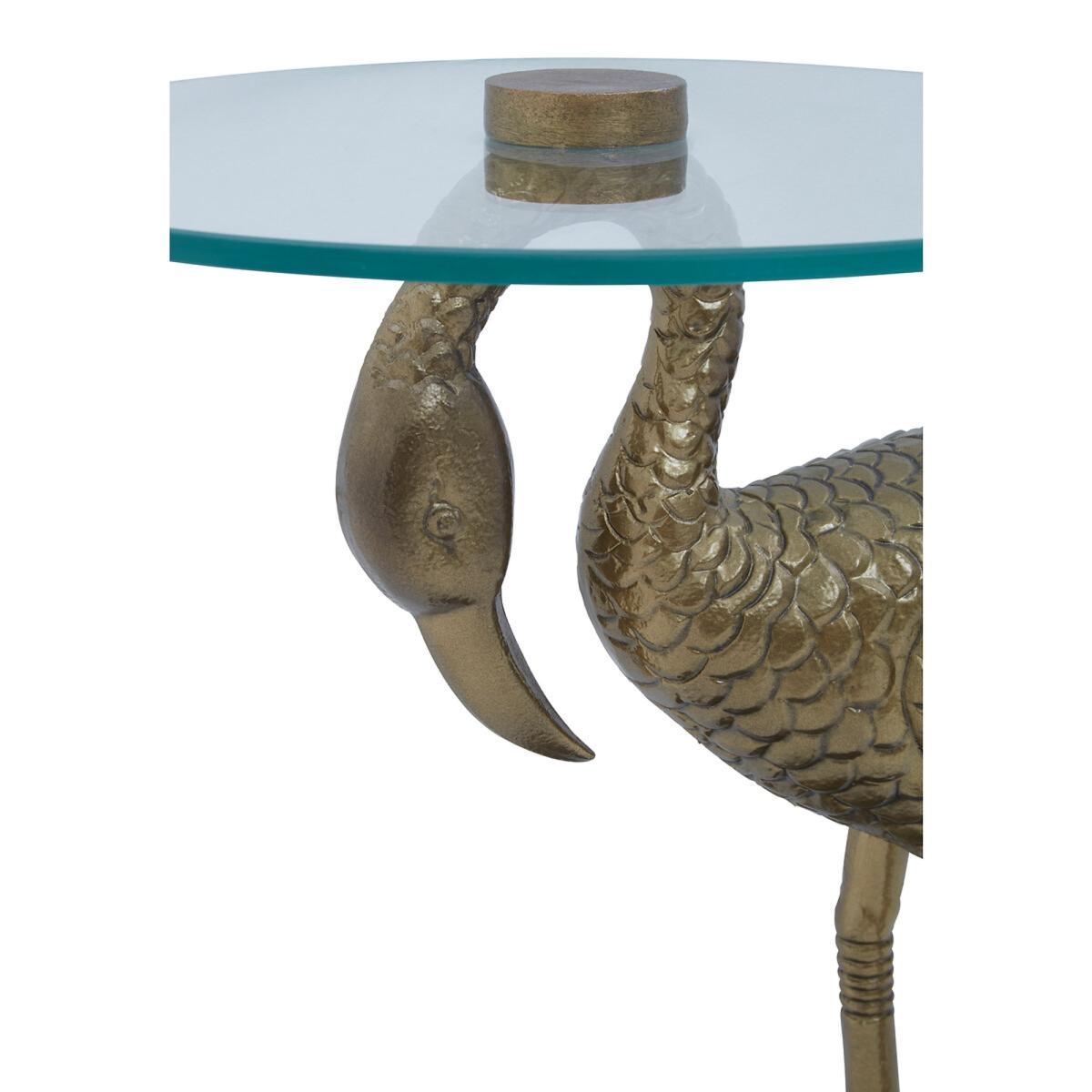 Flamingo Sculpture Side Table in Gold Finish with Glass Top
