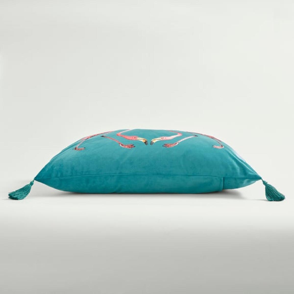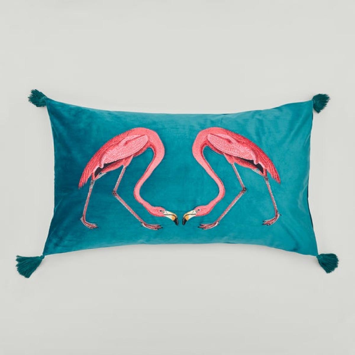 **In collaboration with the Natural History Museum** * Made from recycled polyester * Zip to secure inserted filling * Machine Washable * Flamingo bird embroidered design Elevate your space with the Flamingo Teal Embroidered Cushion. The same exquisite embroidery detail, secure zip, and recycled filling make this cushion a must-have. And yes, it's machine washable – because luxury should be effortless. Part of the birds collection this cushion showcases one of our world’s wonders right from your living room.**Natural History Museum x Dunelm**From our familiar garden friends to more exotic species from tropical lands, birds are all around us. They live on every continent, in every type of habitat and can be as different as the hummingbird and the penguin. This collection pays homage to the incredible global diversity of birds with a focus on some more exotic species such as the Greater flamingo and Toco Toucan. © The Trustees of the Natural History Museum, London 2024. All Rights Reserved.