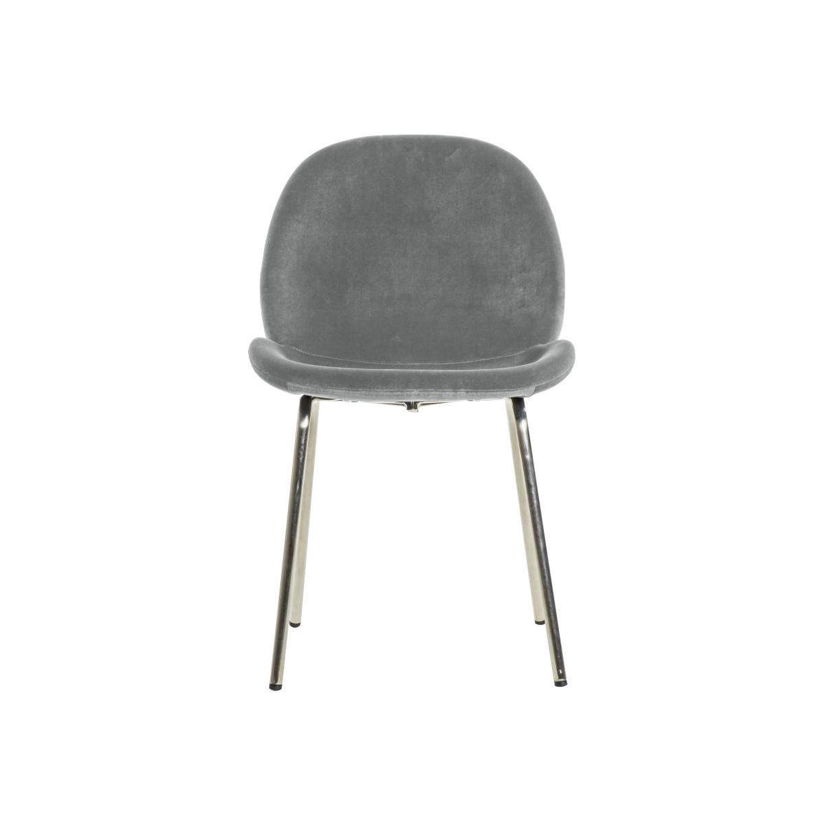 This dining chair offers simple, contemporary design, with its sleek seat and metal base. The subtle light grey velvet pairs perfectly with the chrome finish of the base to give a chic sophisticated look. Available in four other colours, and there are also bar stools in three colours.