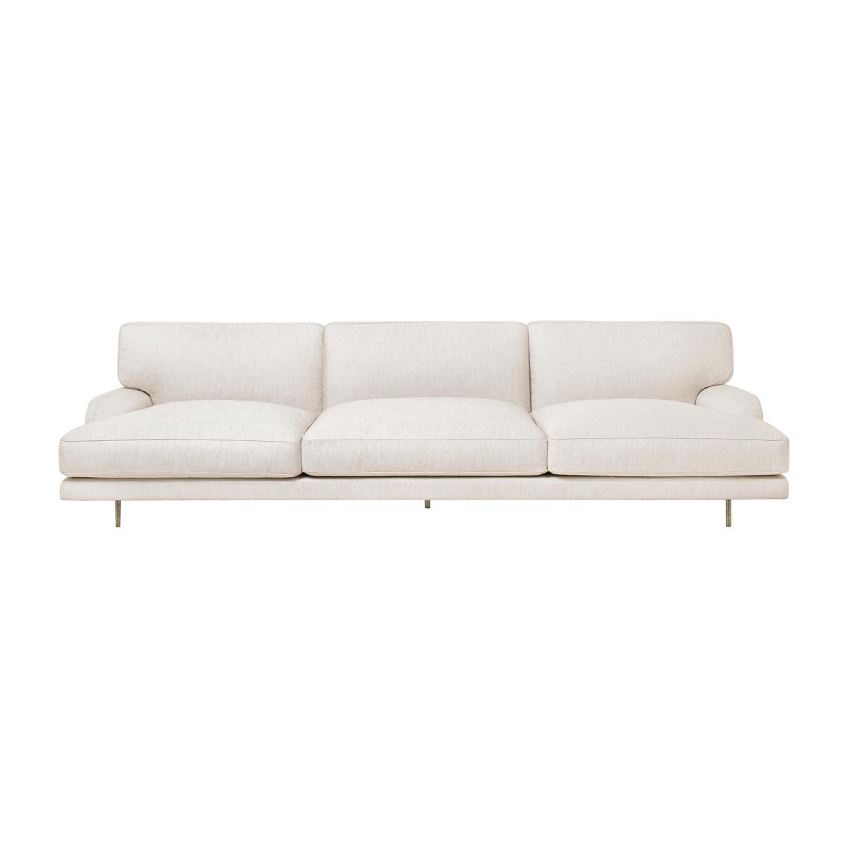 Designed by Gam. Fratesi, the Flaneur 3-Seater Sofa reimagines the iconic English 'roll-arm' sofa, brought to life by Copenhagen-based manufacturer GUBI. Revisiting a classic design with a contemporary twist, the sofa's low, generous proportions and rounded cushions reflect the designer's Italian approach to comfort, with taut upholstery and a brass base to create clean Scandinavian-influenced lines and simple functionality. Founded in 2006 by architects Stine Gam and Enrico Fratesi, the award-winning Copenhagen-based design house takes its creative drive from a fusion of tradition and renewal, drawing on both designers' experiences of Danish and Italian craft traditions. Renowned for applying an experimental approach to every project, Gam Fratesi awards each design with a visible historical context and unique, fresh aesthetic.