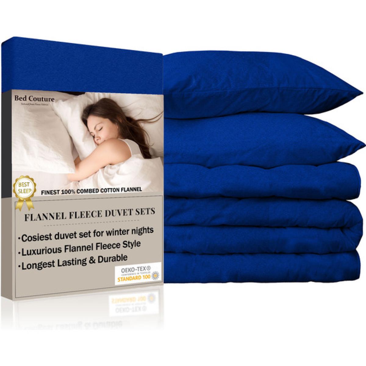 Flannel Fleece Duvet Cover 155x200cm and 2 pillowcases 50x70cm - Royal Blue