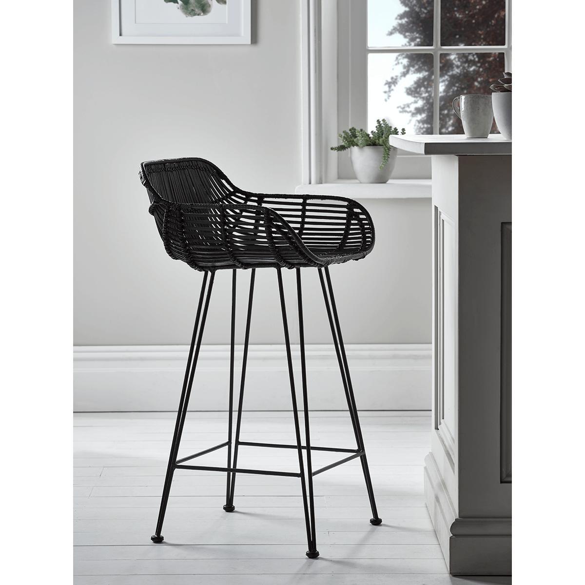 Inspired by classic 1950’s design and material, our stylish high stool is now available with a black painted finish. Each stool has a strong black iron frame and woven rattan seat for perfect Scandi style. Our contemporary twist on this classic design has been specially designed for your comfort with a wide shaped seat, two low arms and foot rests. Also available in. Natural.