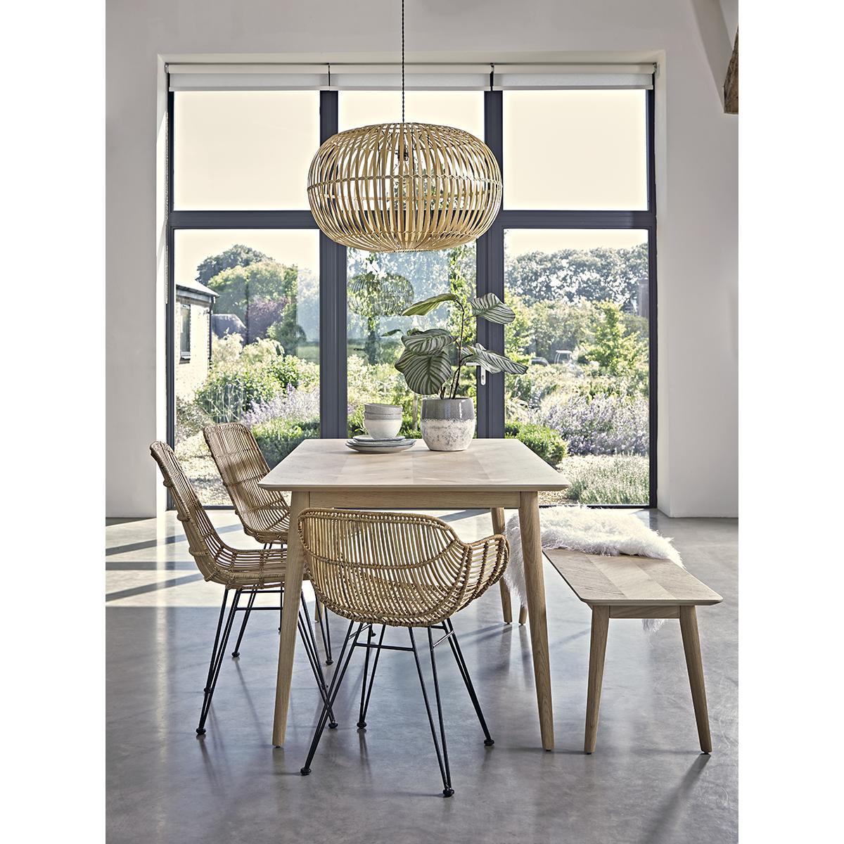 Inspired by classic 1950’s design and material, our stylish dining chair has a strong black iron frame and woven rattan in tonal shades of blonde. Our contemporary twist on this classic design has been specially designed for your comfort with a wide shaped seat and high back.