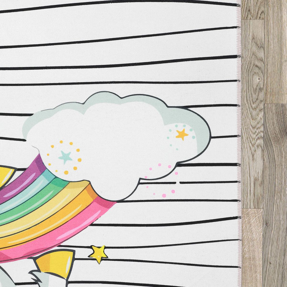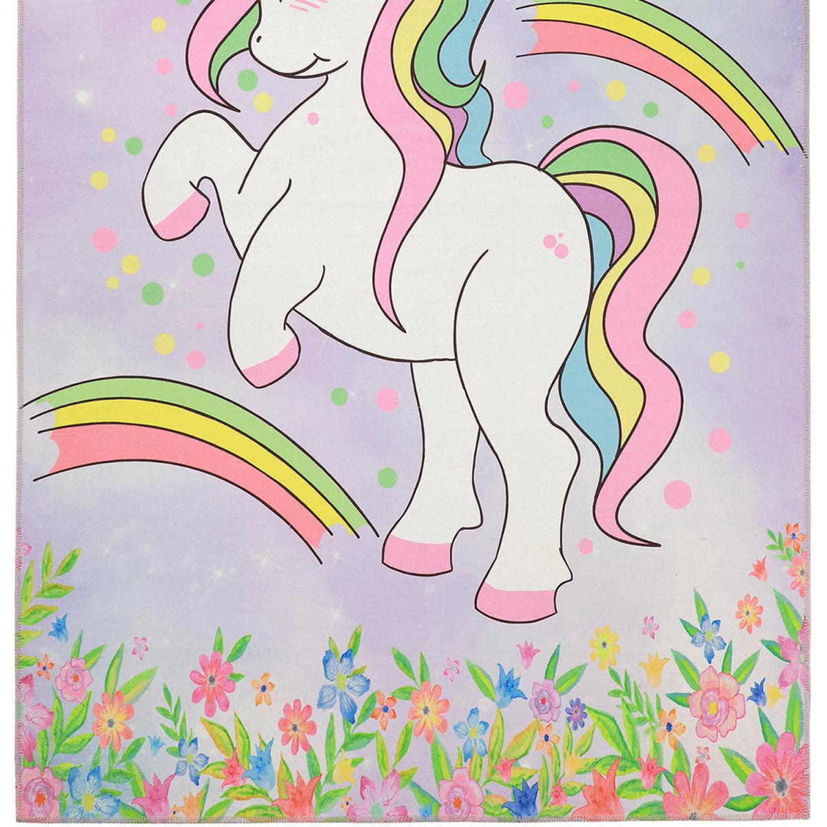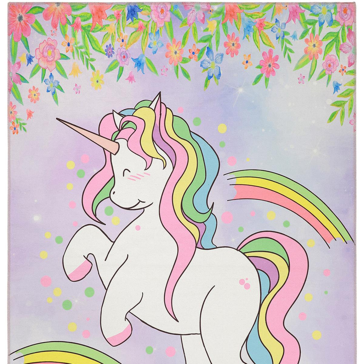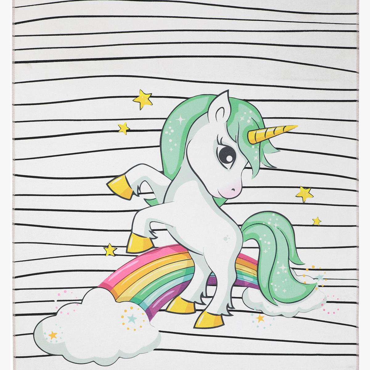 Flatweave Unicorn Kids Bedroom Chenille Rug - Green and Multi