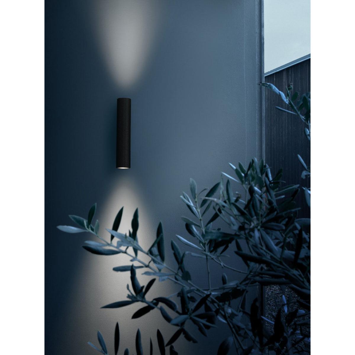 Famous designer Patricia Urquiola created “Flauta”, a series of wall lights inspired by the pure forms of organs and flutes. These aluminium tubes stand out for their incised surface which produces a refined relief texture. The Riga version is dressed in vertical stripes that stand out for their rigorous purity and classic appeal. The Spiga version is characterised by a herringbone weave, a sophisticated detail synonymous with elegance: a jewel with an antique look and contemporary design. Flauta wall lights provide double light emission: lighting upwards and downwards. You have the option of installing a small adjustable reflector disc, at the top or bottom of the tube, to create a decorative reflected light effect. This small circular shutter is included and removable. It’s fixed by a magnet and a safety screw. This wall lamp has two built-in LED light sources (at the top and bottom of the tube). The sealing of the optical compartments is ensured by a mechanically siliconised transparent glass around the perimeter of the lamp to prevent water deposits. This Flauta wall light can be used indoors or out (IP 65). Made in Italy, this high-quality light is very durable. The aluminium is coated with powder paint: the first coat of epoxy powder provides chemical and mechanical resistance, while the second top coat of polyester powder provides resistance to UV rays and corrosive atmospheric agents. The painted surfaces are treated with alkaline and acid washes, rinsed with deionised water and then subjected to a chemical conversion treatment to protect them from oxidation. The Flauta wall light is available in a wide chromatic range, offering great freedom of customisation. The Flauta collection was born from a desire to create a flexible, evolving project which adapts equally well to both business and residential projects.