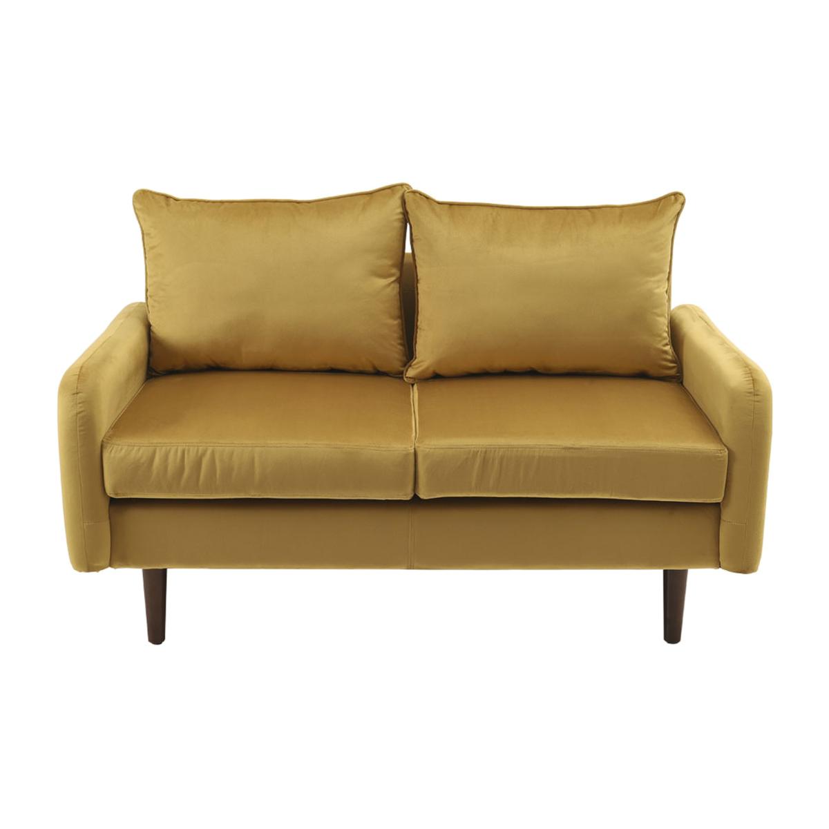 Flaxen Two-Seat Velvet Sofa for Living Room - Flaxen