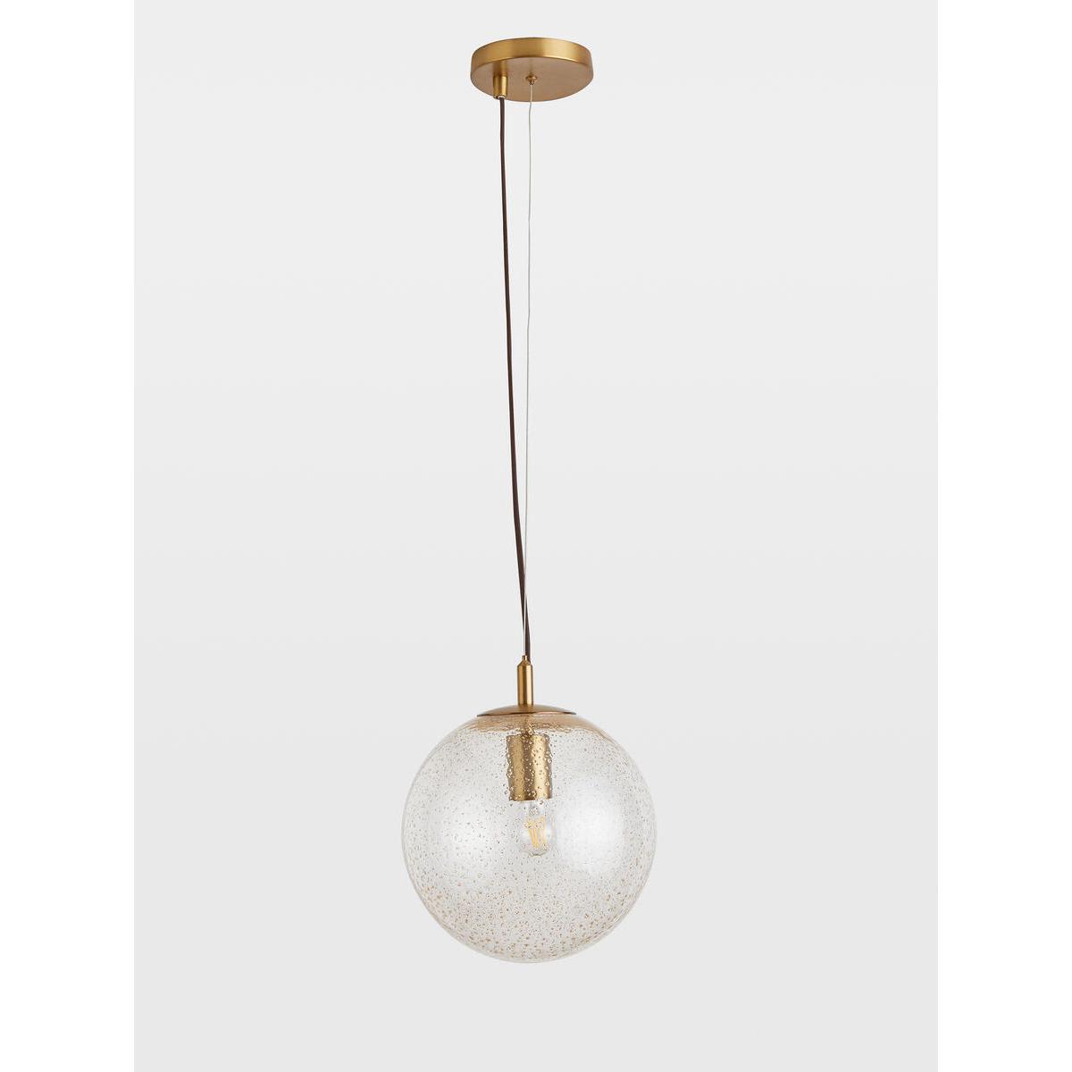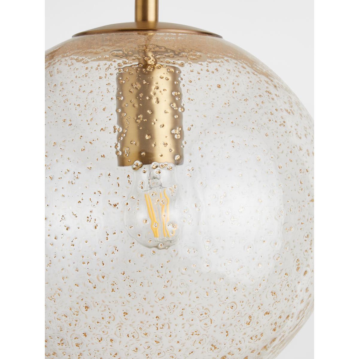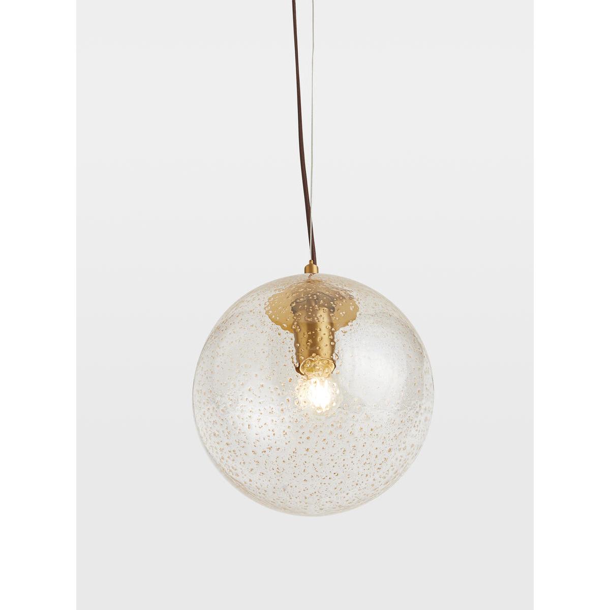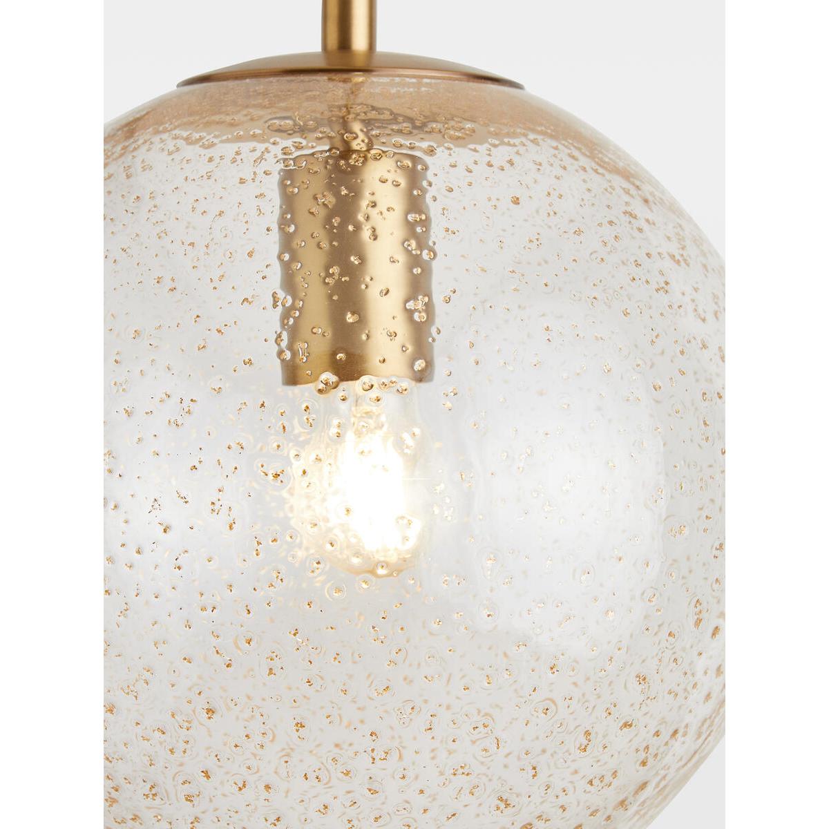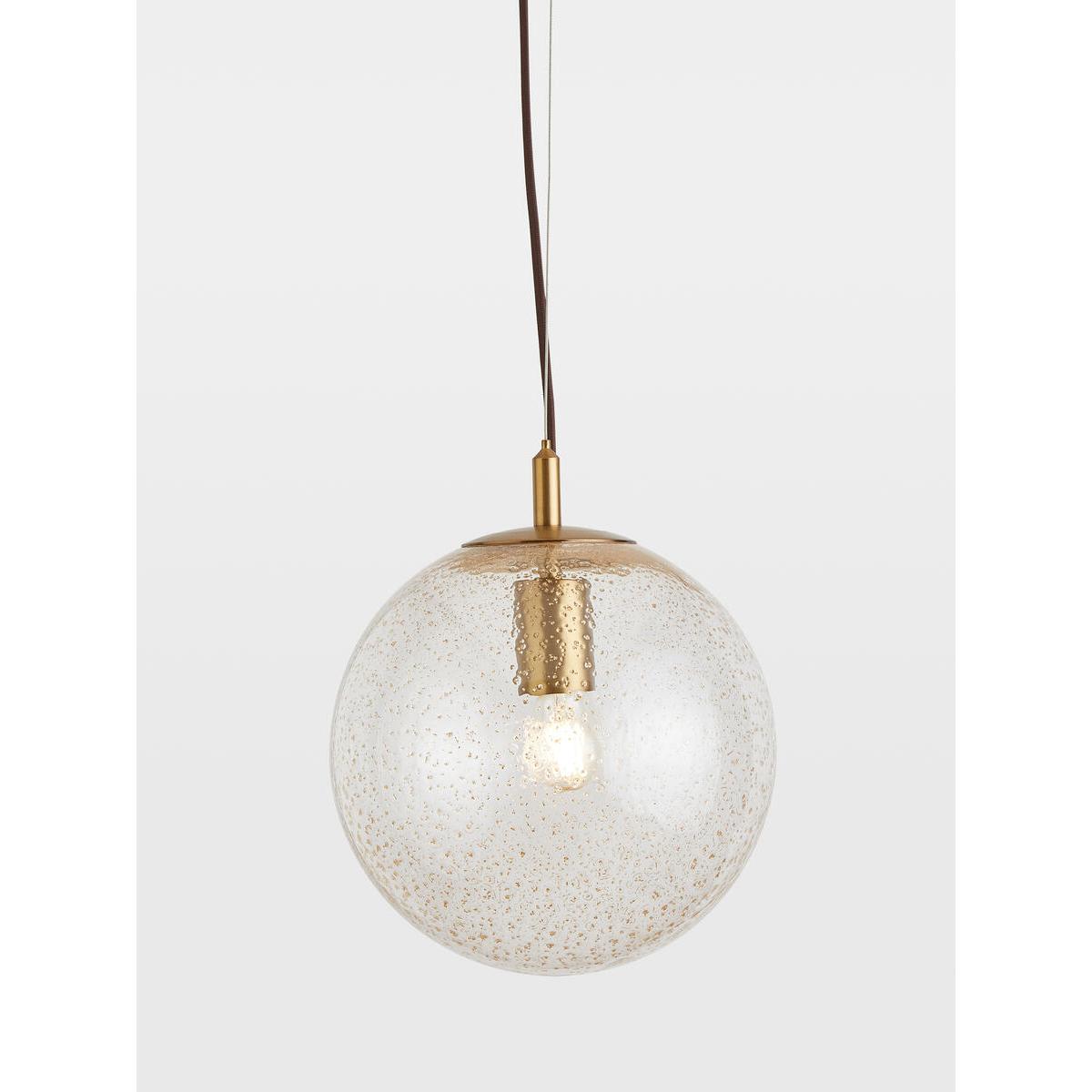 Available in small, medium and large, the Flecs pendant is a versatile lighting option crafted from clear glass, with gold-tone flecks for a hint of modern elegance. Group together with other sizes in the range to curate your own lighting scheme similar to 180 House. Small, medium and large sizes available Clear glass Gold-tone flecks inside Medium style requires 1 x Standard E27 Golf Ball bulb/ max 40W Inspired by 180 House