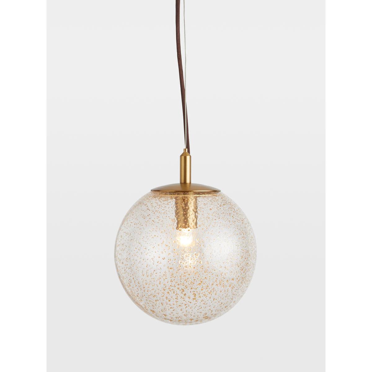 Available in small, medium and large, the Flecs pendant is aversatile lighting option crafted from clear glass, with gold-toneflecks for a hint of modern elegance. Group together with othersizes in the range to curate your own lighting schemes similar to180 House. Small, medium and large sizes available. Flecked glass. Small style requires 1 x Standard E14 Golf Ball bulb/ max40 W. Inspired by 180 House.