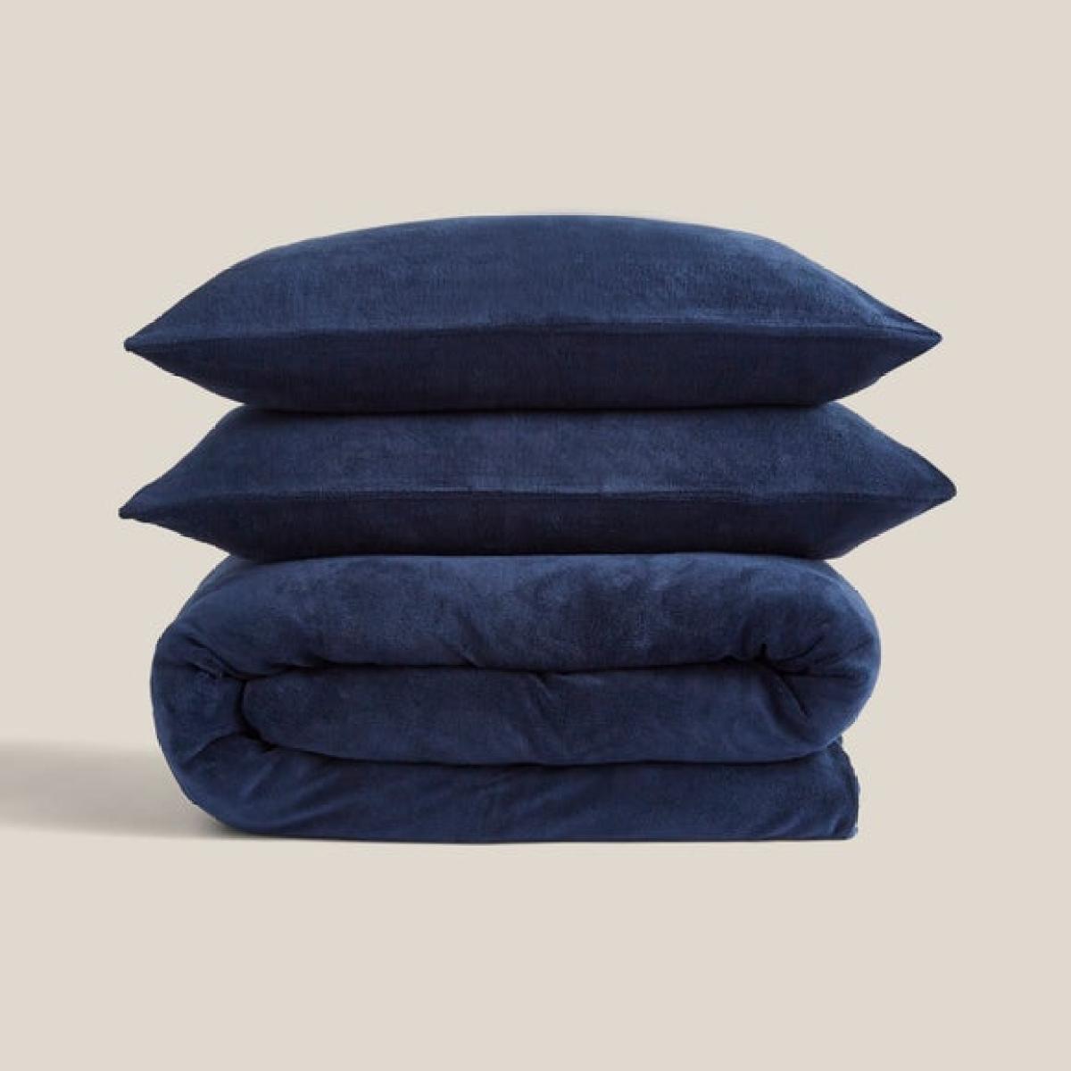 This fleece duvet cover and pillowcase set is a practical choice for adding cosy, tactile comfort to your bedroom. I love its versatility - the plush fabric is ideal for colder months, providing warmth without bulk, making it perfect for contemporary or more relaxed, Scandinavian-inspired interiors. It pairs well with neutral tones or layered with textured throws and cushions for a hygge-inspired look. To style it effectively, keep the surrounding decor minimal with warm wooden accents or soft lighting to enhance its inviting feel. This set works particularly well in bedrooms aiming for a cosy, understated vibe that prioritises comfort and simplicity.