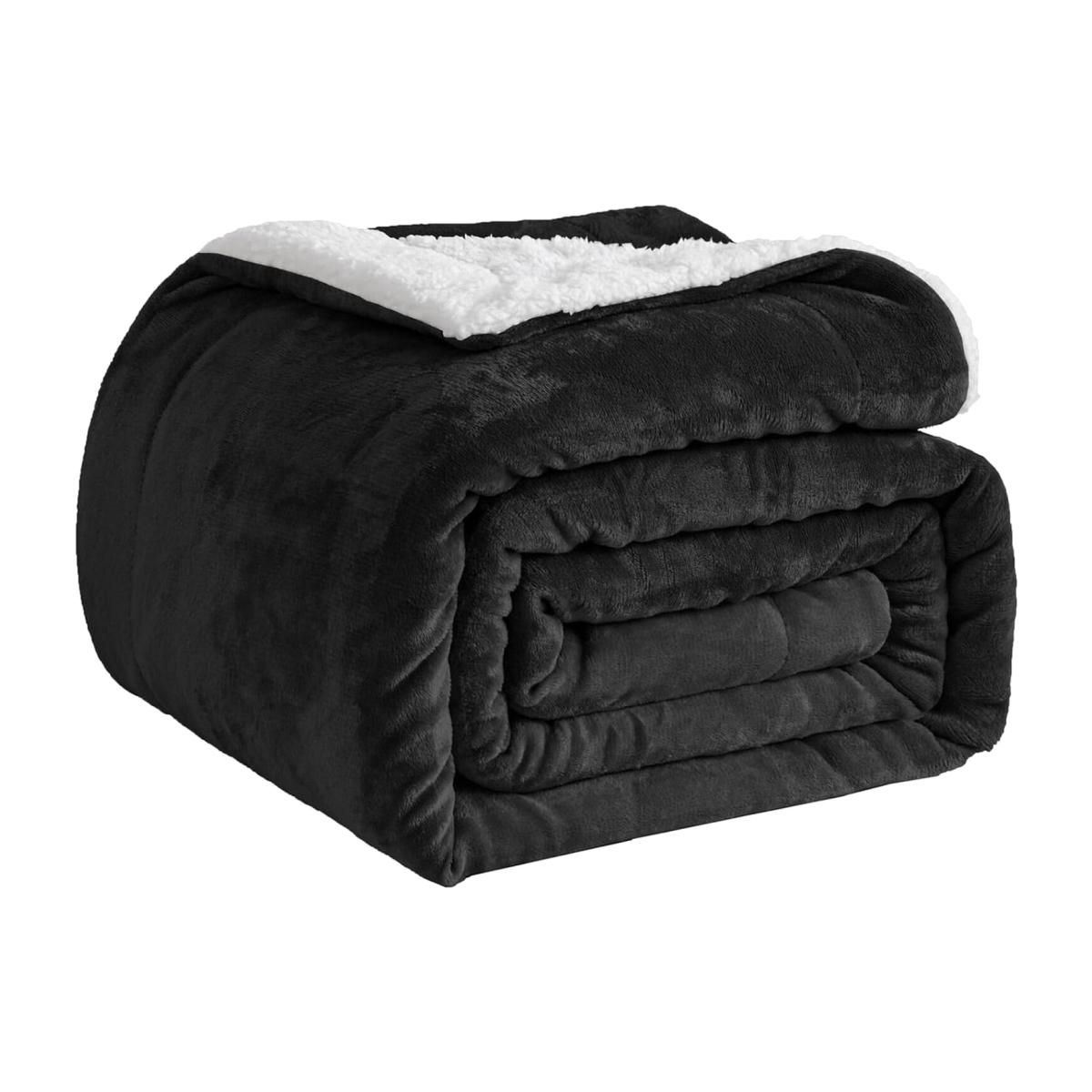 Fleece Flannel Sherpa Soft Blankets for Bed Sofa and Travel - Black / 200cm