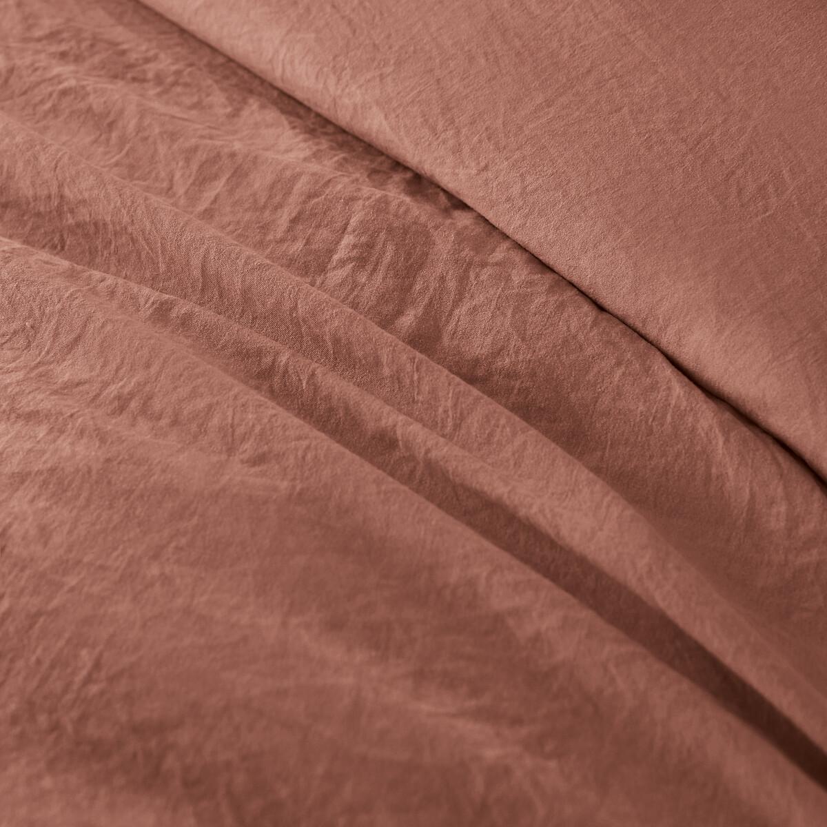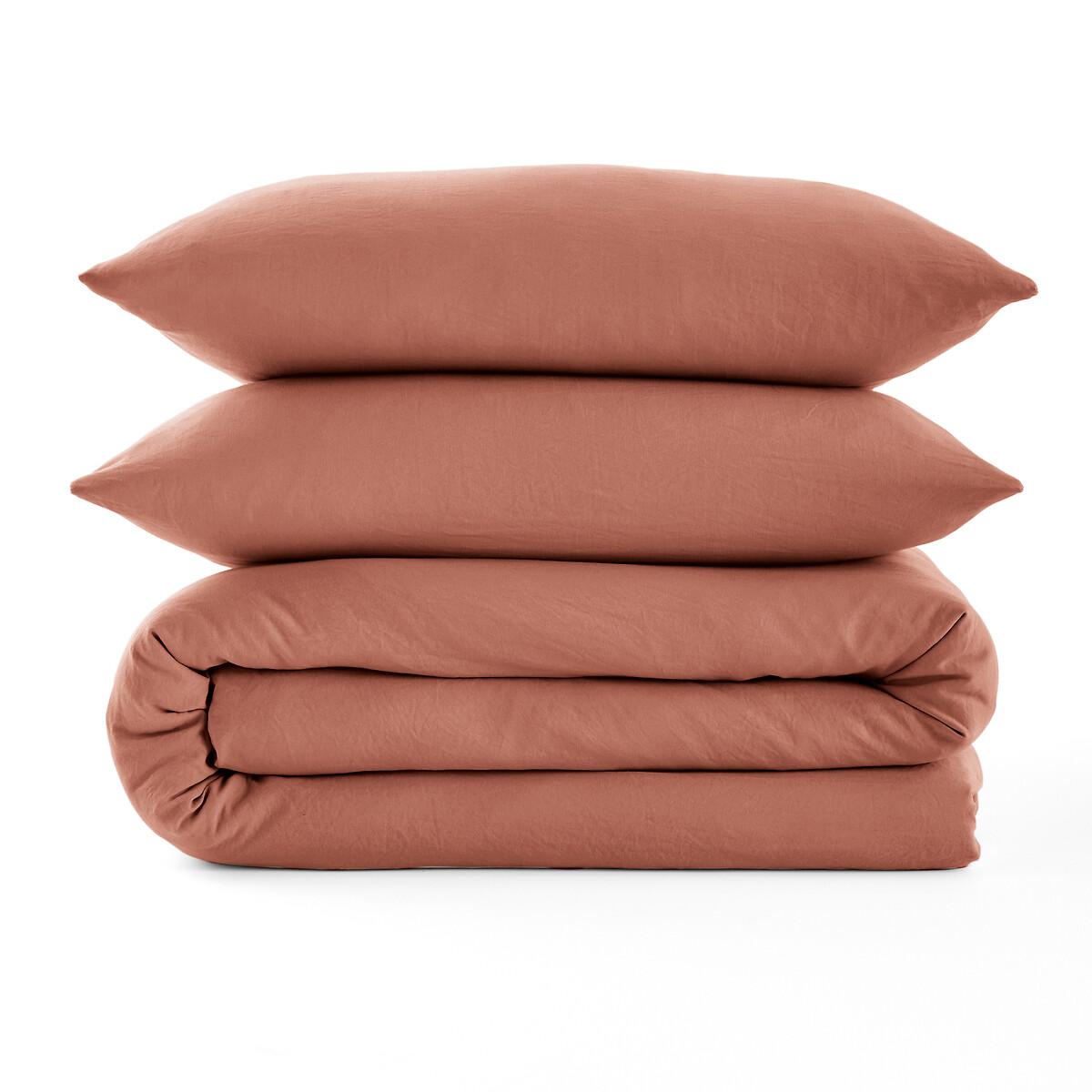 A trendy colour palette, a slightly wrinkled matte appearance and an ultra-soft touch: this bed linen is made from washed recycled microfibre, a soft, light, comfortable and easy-to-wear material. Plain, it fits easily into the decoration of a room. This set includes the duvet cover and its matching rectangular pillowcase. Product Details • 100% polyester 95g/m2 • Recycled polyester • Washed microfibre • Straight buttoned base for the duvet cover. Care Advice • Machine washable at 60°C • By washing your laundry at 40°C instead of 60°C, you limit energy consumption. Sizes • Duvet cover 140 x 200cm + 1 pillowcase 50 x 70cm: Single • Duvet cover 200 x 200cm + 2 pillowcases 50 x 70cm: Double • Duvet cover 240 x 220cm + 2 pillowcases 50 x 70cm: King • Duvet cover 260 x 240cm + 2 pillowcases 50 x 70cm: Super King • Recycled polyester. Using recycled polyester is all about conserving resources and reducing waste.