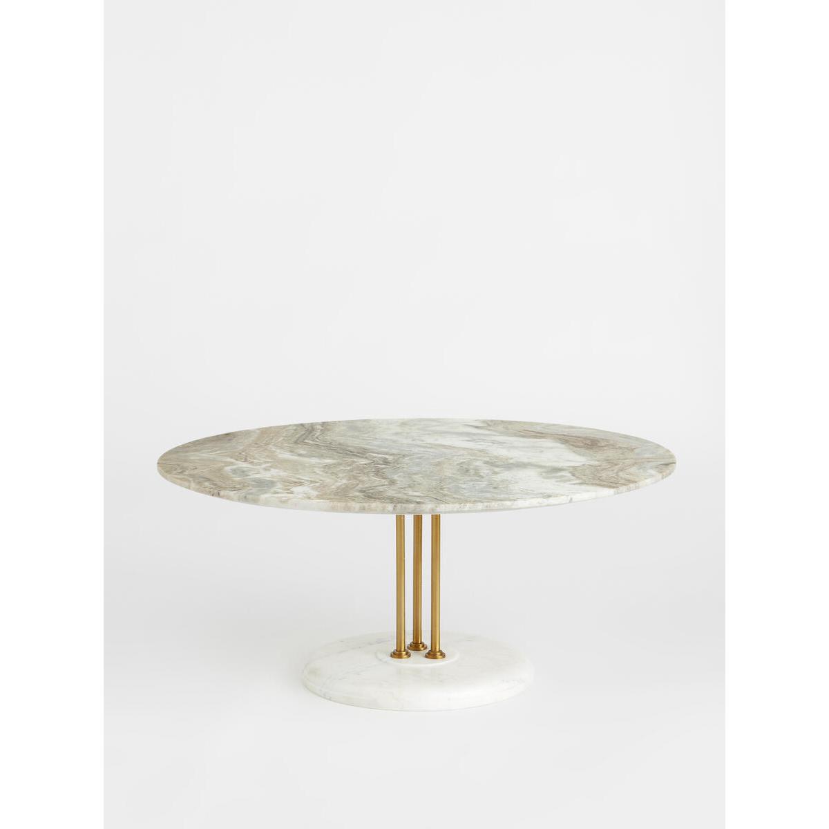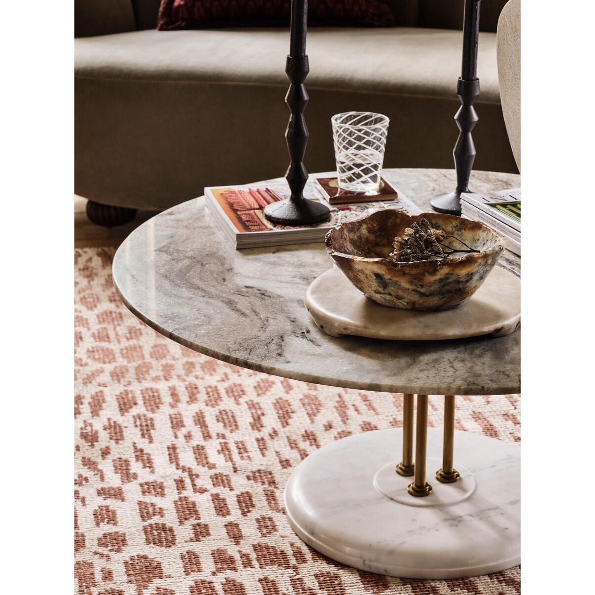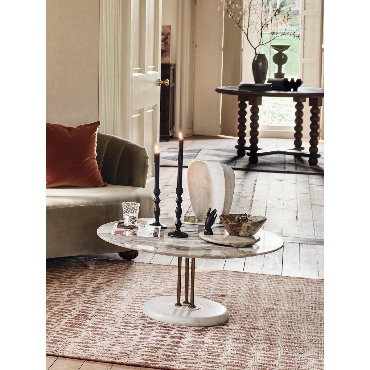 This Fleet coffee table has a solid Fantasy Brown marble top andbrass legs for a sculptural feel. The weighty marble base securesit firmly in place. We love it grouped together with the Kapristone and green marble versions to create an interesting contrastof heights and textures. It's inspired by the tables found at 180 House on London's Strand. Fleet coffee table. Fantasy Brown marble top. White marble base. Brass legs. Made in India. Inspired by 180 House.