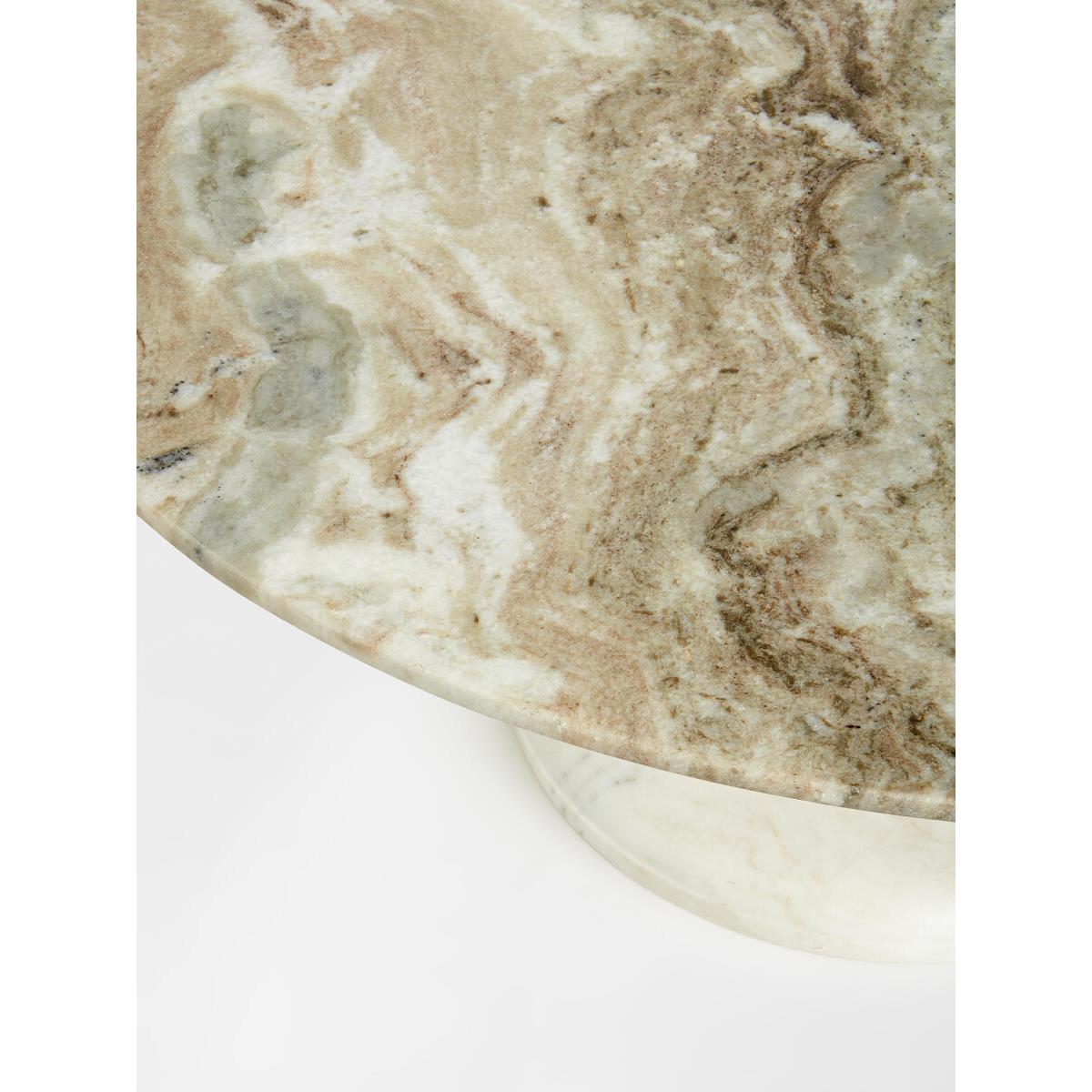 I love this coffee table for its timeless appeal and versatility. The brown marble top adds a touch of luxury and warmth, making it suitable for both modern and classic interiors. It's especially good in neutral colour schemes where it can serve as a statement piece, or in eclectic settings where contrasting textures are key. Practical styling tips include pairing it with simple accessories like candles or a small tray, and keeping the surface clear to showcase the beautiful marble pattern. It works well in both open-plan living rooms and more intimate seating areas, adding character while remaining functional.