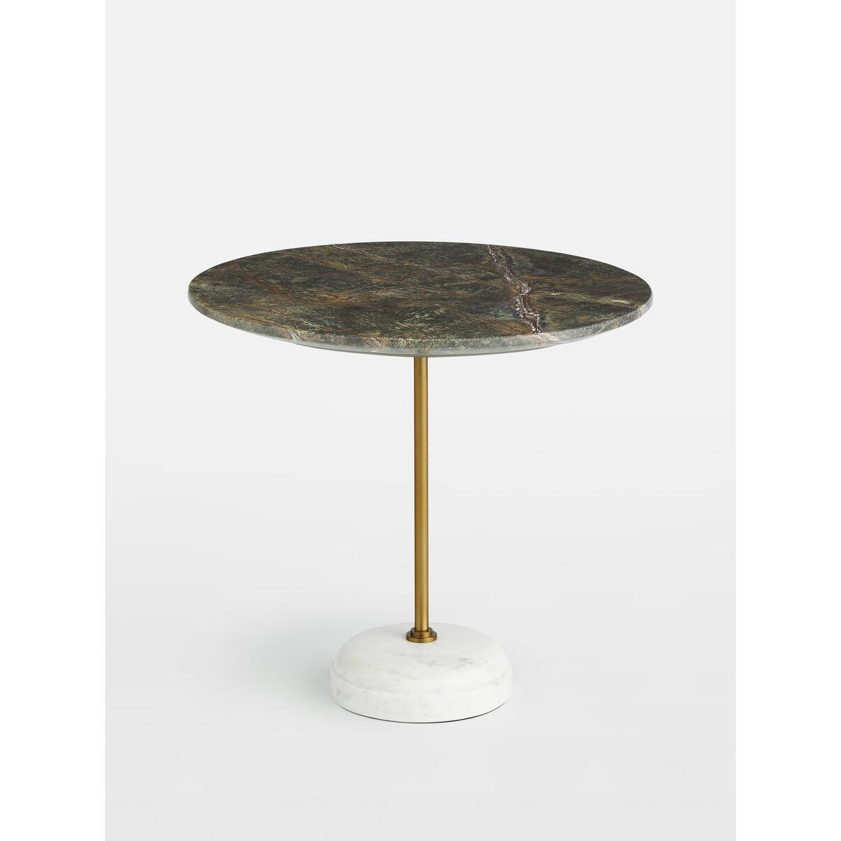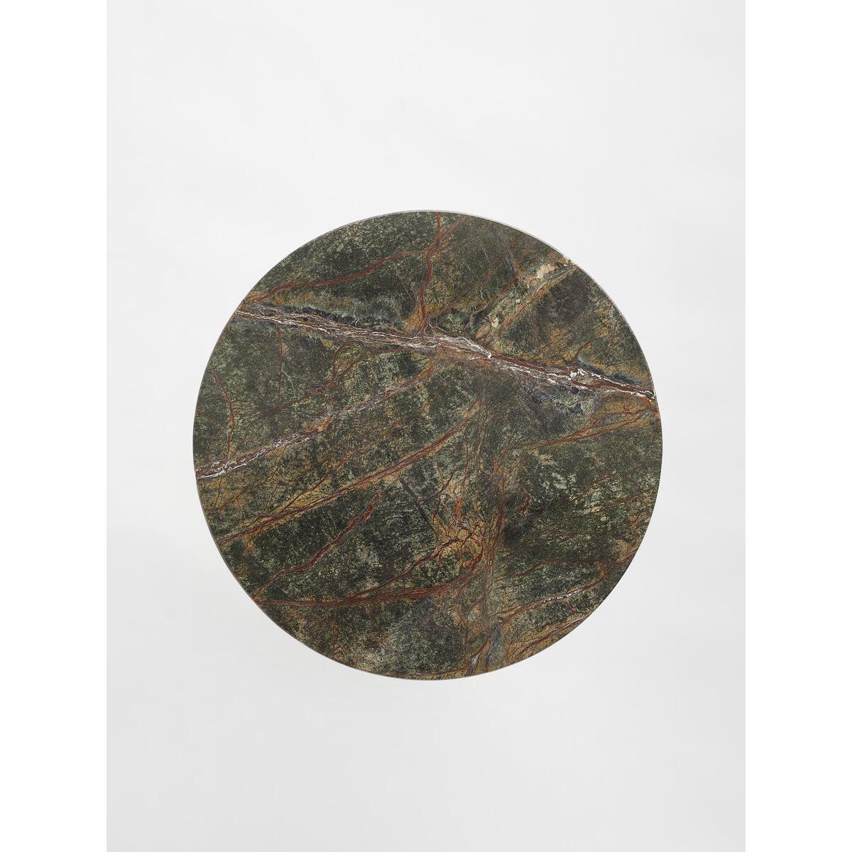 This Fleet side table has a green marble top and single brass leg for a sculptural feel, and its weighty base secures it firmly in place. We love it grouped together with its versions in Fantasy Brown and white marble to create an interesting contrast of heights and textures. It's inspired by the tables found at 180 House. Green marble top Variations in the marble make each piece unique Brass leg Made in India Inspired by 180 House