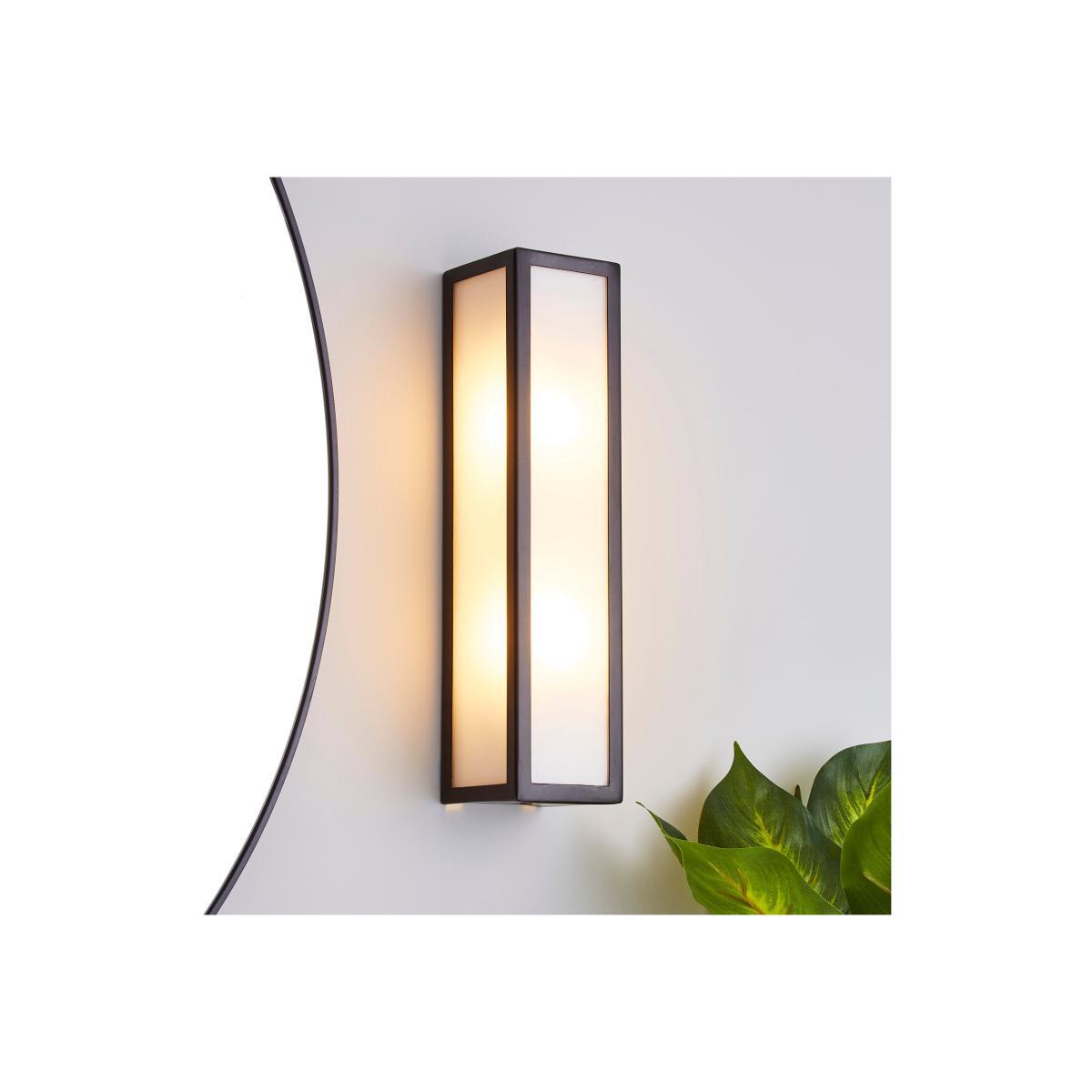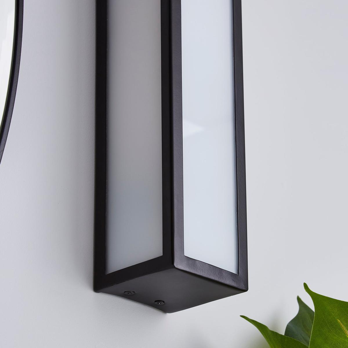 I love this wall light for its sleek, minimalist design and versatile black finish, which makes it a great choice for contemporary or industrial-style bathrooms. Its rectangular shape and soft, diffused glow help create a warm ambiance while providing functional illumination around mirrors or above vanities. It works particularly well in modern interiors with monochrome or neutral palettes, but can also add a striking contrast to patterned tiles or textured wall coverings. For practical styling, consider pairing it with other black-metal fixtures or matte finishes for a cohesive look. Its clean lines and understated elegance make it a reliable choice that elevates the overall aesthetic without overpowering the space.