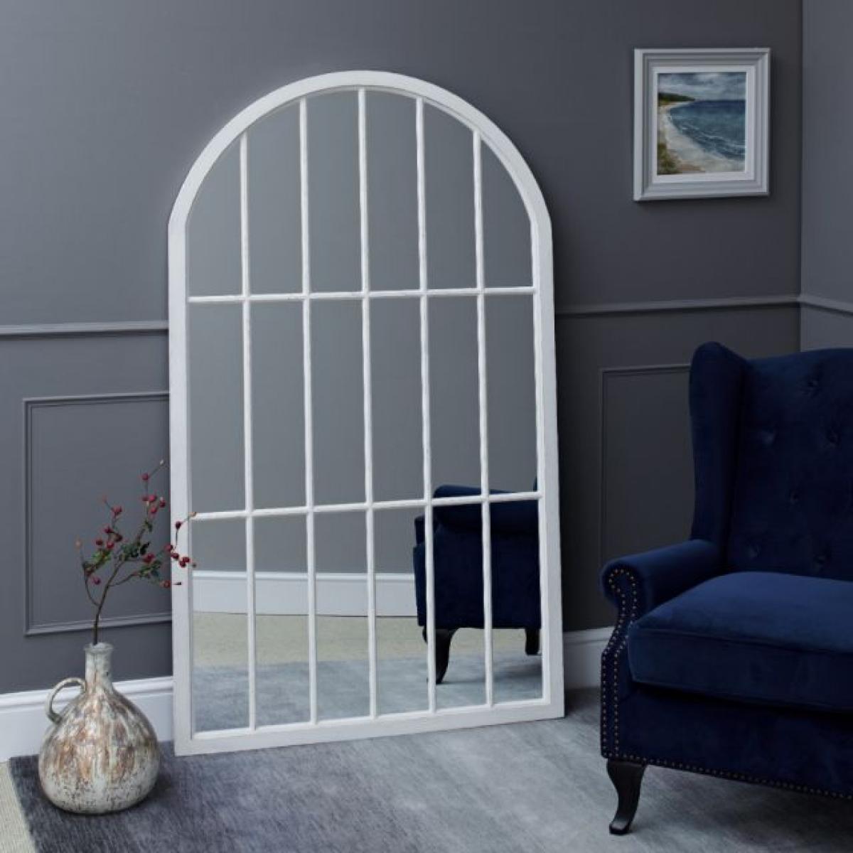 Our large Fleur Arched Framed mirror in white is the big sister of it's smaller counterpart. Framed with a lightly distressed window design with a sweeping arched top and individual panes, this design suits any home or indeed any wall in the home.