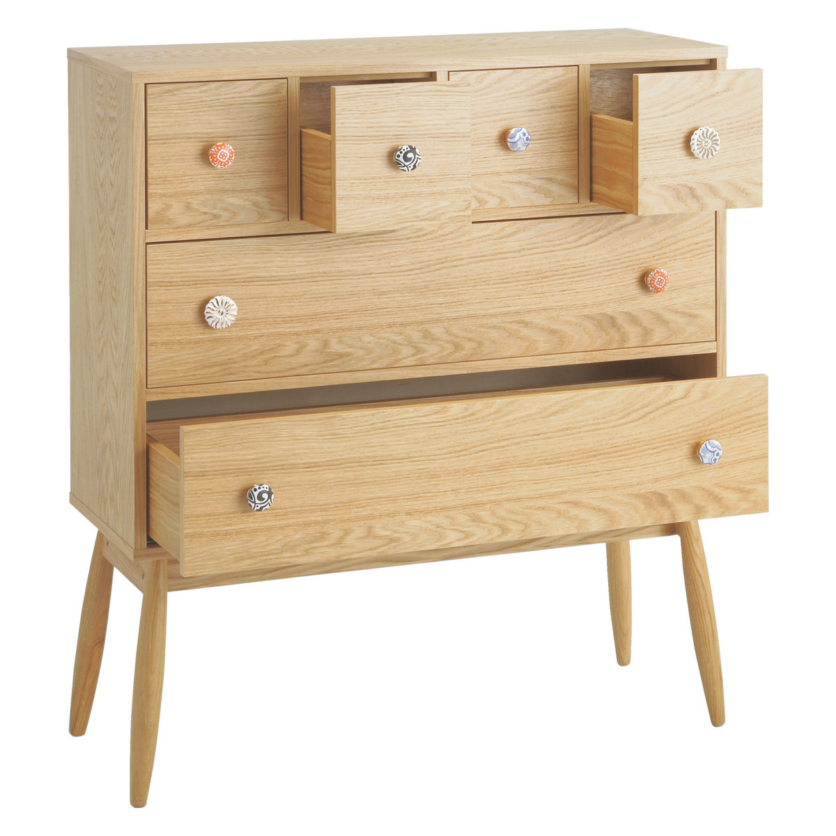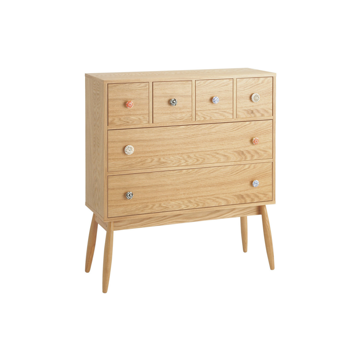 Fleur Oak 6 Drawer Chest With Patterned Ceramic Handles, Oak