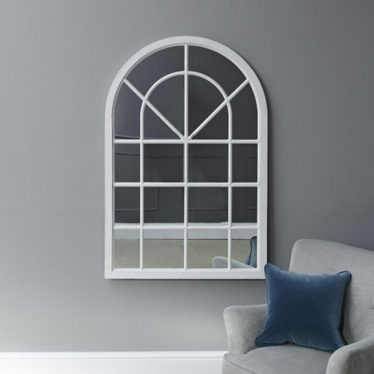 The Fleur Small Arched mirror is part of our Fleur family of georgous mirrors. The mirror is styled as if an arched Georgian window and is framed by a lightly distressed painted wood frame. Featuring a fan of panes in the top section and a squared off bottom section, and exuding a timeless charm, this mirror will suit any home style.