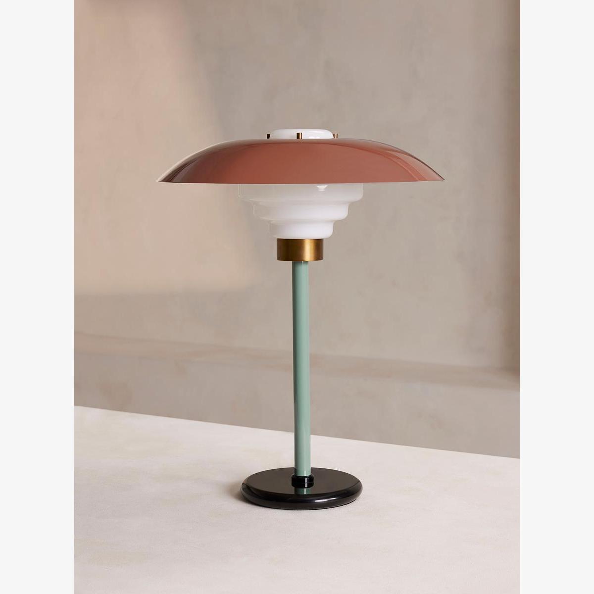 I love this table lamp for its bold, sculptural silhouette and clever colour blocking, which adds visual interest without overwhelming a space. It works particularly well in contemporary or minimalist interiors, where its statement form can be showcased. For styling, consider placing it on a neutral sideboard or desk to let its colours pop, and pair it with simple accessories to keep the look cohesive. Practical tips include using a warm bulb to enhance the colour palette and ensuring the height works well for your setting-perfect as a bedside lamp or on a side table in a cosy corner.