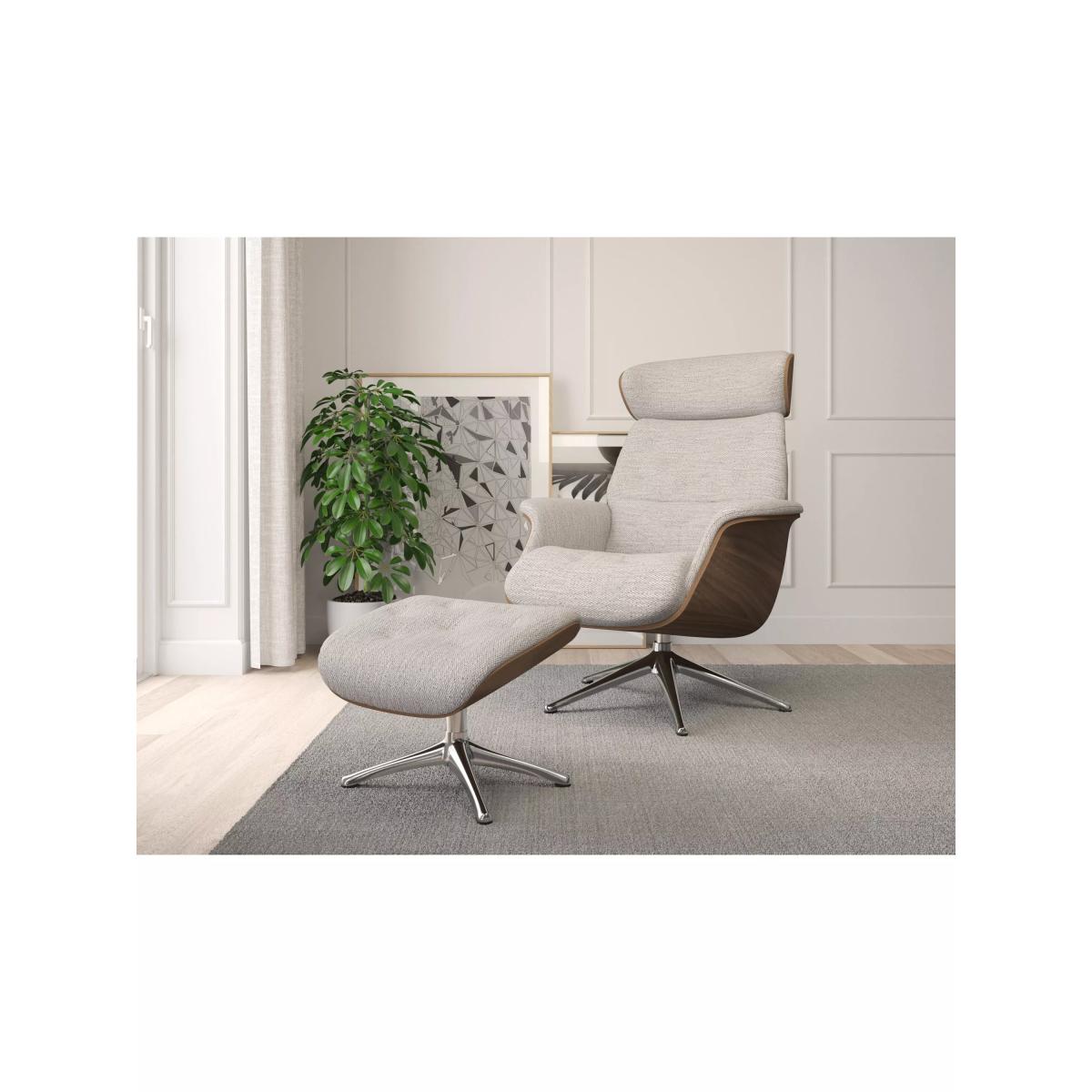 Product Information The Volden Relax Chair with a separate footstool offers timeless style and unmatched comfort. Its gas spring mechanism allows you to adjust your position smoothly and effortlessly for a personalized relaxation experience. Featuring an adjustable headrest for optimal support, the Volden is perfect for reading, watching TV, or unwinding. Available in a range of premium fabrics and leathers, the chair and footstool are completed with polished aluminium legs and are offered with a choice of wood finishes. Try before you buyWe're confident in our furniture's quality, but it's always a good idea to check that it's a good personal fit for you. Working in partnership with ClearabeeIf you need help disposing of your old sofa when ordering a new one we have teamed up with Clearabee to offer a convenient and cost effective solution, diverting 100% of products from landfill*. Find out more by visiting our Clearabee partner page below. *Products will be exited via energy from waste exit routes and diverted from landfill in compliance with regulations. Measuring Up for Furniture Guide Sofas, Sofa Beds & Chairs Buying Guide Upholstery Care Guide Clearabee Sofa Collection Service