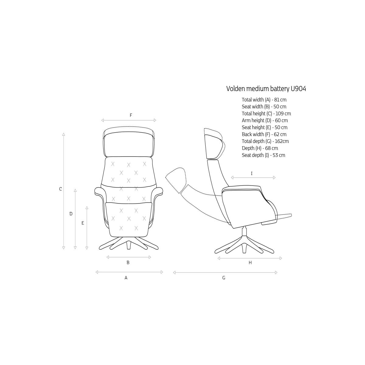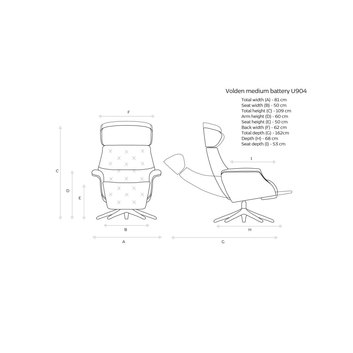 Product Information The Volden Relax Chair with an integrated footrest combines modern elegance with unparalleled comfort. Its electric adjustment allows you to seamlessly change the back angle and footrest position using a discreet motion touch panel. Featuring an adjustable headrest and available in various premium fabrics and leathers, the Volden is the ultimate blend of functionality and style. The chair is battery-powered for convenience and flexibility, with polished aluminium legs and a choice of wood finishes. Try before you buyWe're confident in our furniture's quality, but it's always a good idea to check that it's a good personal fit for you. Working in partnership with ClearabeeIf you need help disposing of your old sofa when ordering a new one we have teamed up with Clearabee to offer a convenient and cost effective solution, diverting 100% of products from landfill*. Find out more by visiting our Clearabee partner page below. *Products will be exited via energy from waste exit routes and diverted from landfill in compliance with regulations. Measuring Up for Furniture Guide Sofas, Sofa Beds & Chairs Buying Guide Upholstery Care Guide Clearabee Sofa Collection Service