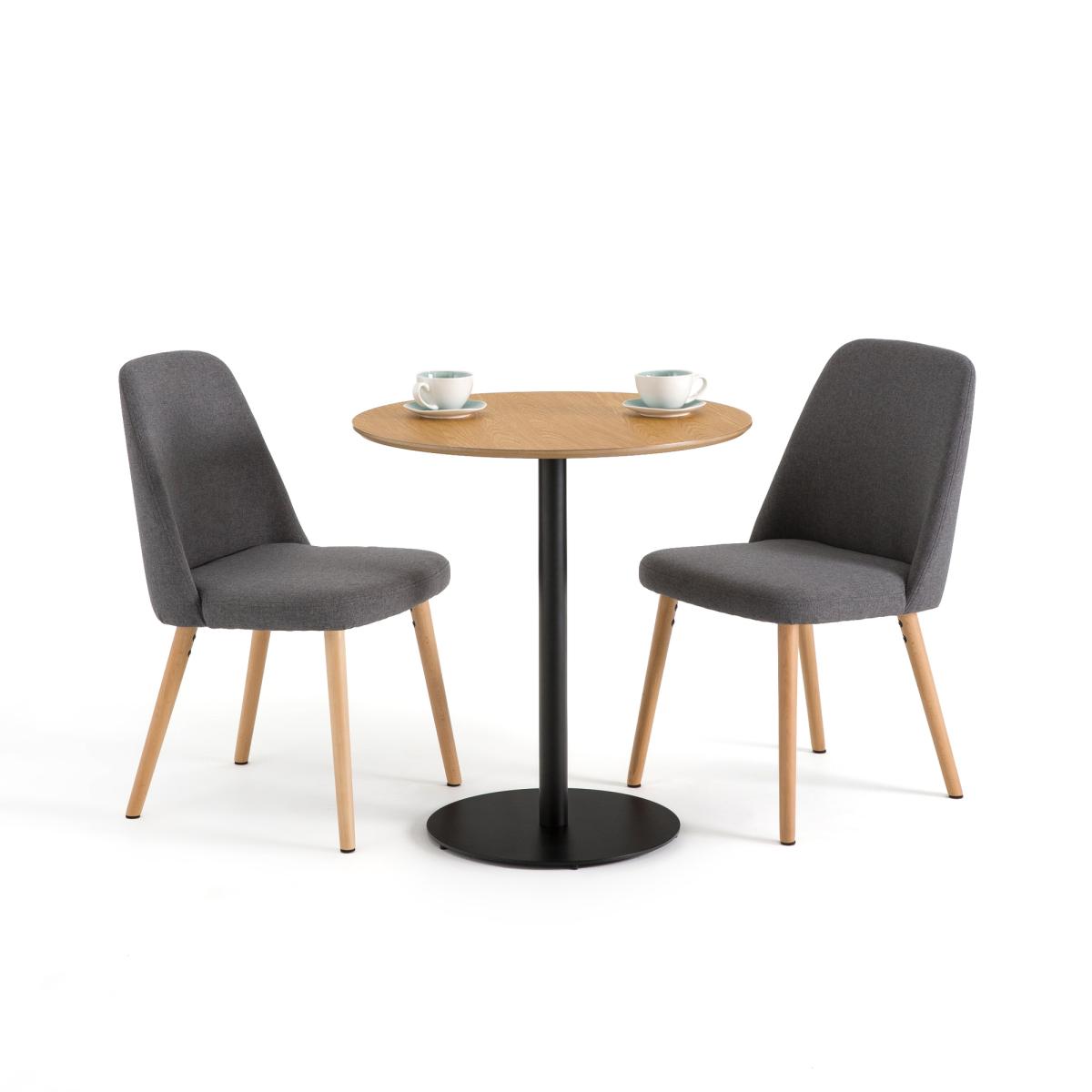 I love this bistro table for its clean lines and mix of warm oak effect top with a matte black base, which makes it a versatile choice in both compact flats and café-style kitchens. It works especially well in Scandi, industrial or contemporary settings; pair it with simple spindle-back chairs or lean-back metal stools to play up the contrast. For styling, keep the tabletop clutter-free - a small plant in a neutral pot or a stack of monochrome crockery will let the materials shine, while its slim pedestal design means you can tuck it almost anywhere and still have plenty of legroom.