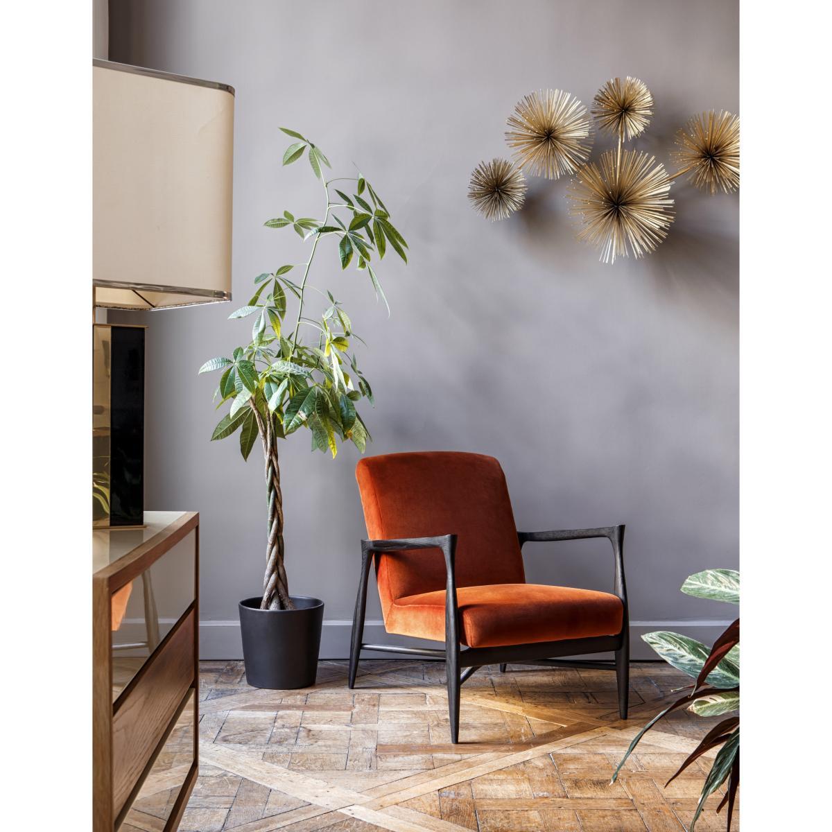 I love this armchair for its versatile design and subtle character. The padded finish and fabric option make it comfortable and inviting, ideal for cosy corners or as a statement piece in a living room or reading nook. The natural wood frame adds warmth and complements both modern and vintage-inspired interiors, making it adaptable to various colour schemes. To style it effectively, consider pairing with textured cushions or a throw in contrasting colours to enhance its visual appeal. It works particularly well in eclectic, Scandinavian, or mid-century inspired spaces, where its relaxed yet refined look can really shine. Practical tips include placing it near a side table for convenience or accenting it with a soft rug to create a welcoming, layered atmosphere.