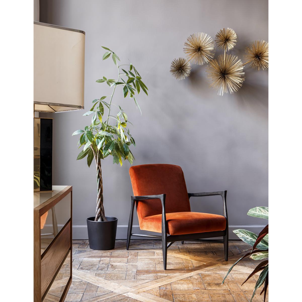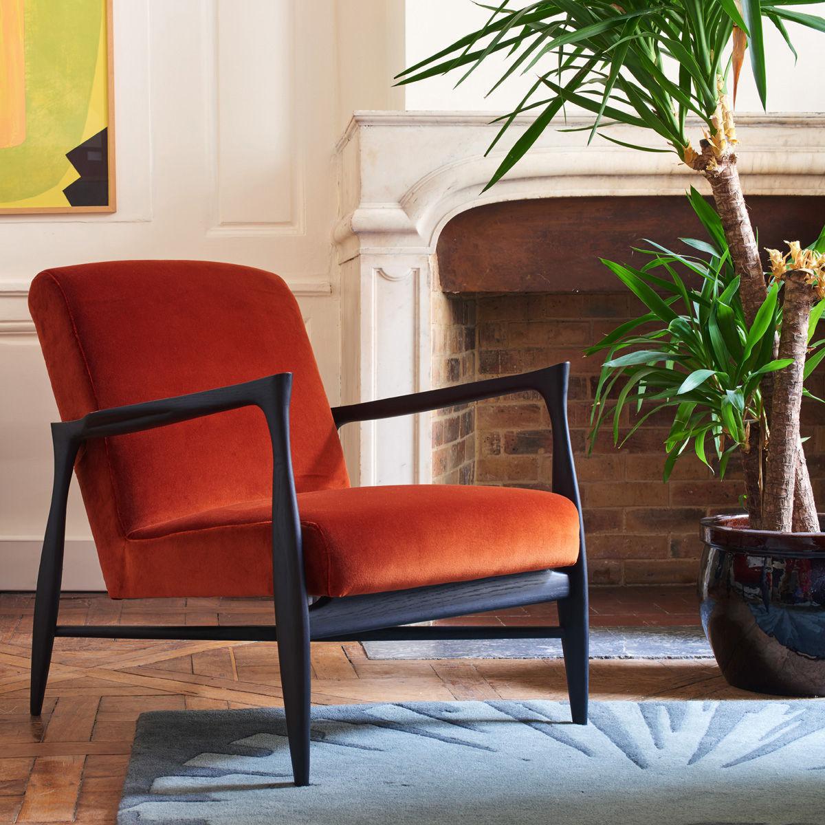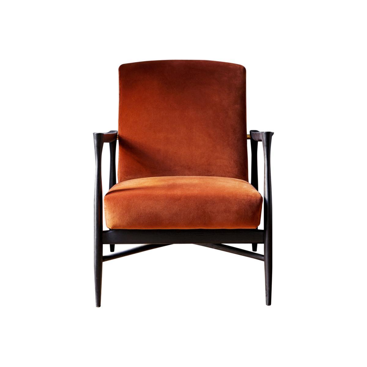 Inspired by Scandinavian design from the 50s, the Floating armchair displays a class worthy of the greatest design icons. This armchair comes from superb artisanal woodwork with perfect finishes. The assembly of the different parts is invisible. The stained solid beech structure shows great finesse. The wood adopts clean, contemporary forms. The design of Floating is highly sensual and organic. Extremely ethereal, the seat suspended from the structure seems to float. The armrests with their horizontal, straight, sharp lines contrast with the more curved, organic vertical lines. The luxurious velvet covering completes the impeccable style of this timeless piece. This ultra-comfortable upholstered armchair will provide the centrepiece of your living room.