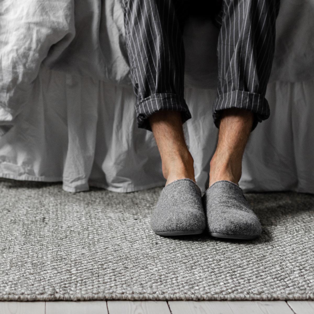The Flock is a gorgeous carpet made from hand-woven wool to give it a soft and beautiful surface. A gorgeous detail in the living room or bedroom as it creates a warm and inviting interior. Made from premium New Zealand wool, the carpet bears a natural grey hue that is intrinsic to the material, meaning it has not undergone any further staining and colouring processes. The elegant grey-melange shade wonderfully complements the light wood aesthetic that appears throughout Scandinavian decor to add an inviting and cosy texture to any modern home.