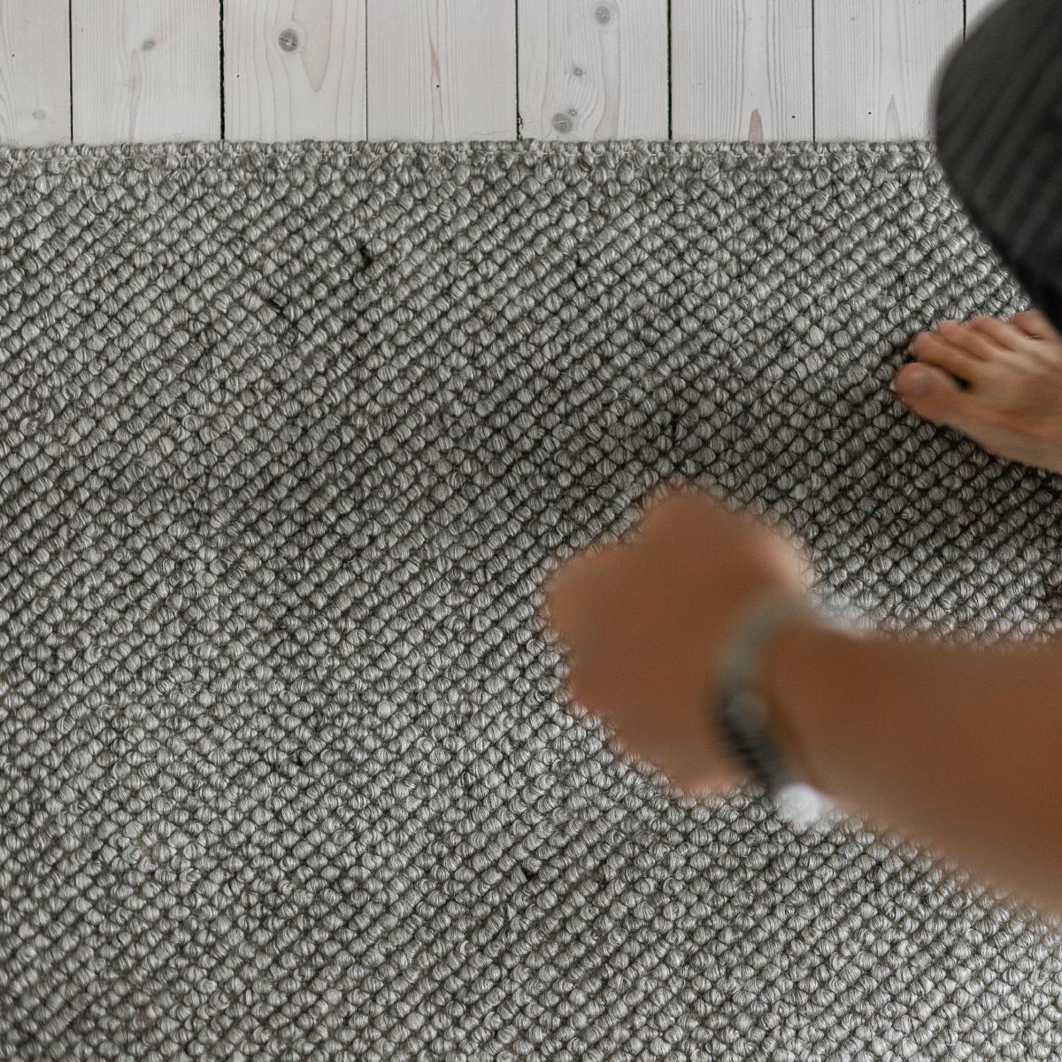 The Flock is a gorgeous carpet made from hand-woven wool to give it a soft and beautiful surface. A gorgeous detail in the living room or bedroom as it creates a warm and inviting interior. Made from premium New Zealand wool, the carpet bears a natural grey hue that is intrinsic to the material, meaning it has not undergone any further staining and colouring processes. The elegant grey-melange shade wonderfully complements the light wood aesthetic that appears throughout Scandinavian decor to add an inviting and cosy texture to any modern home.